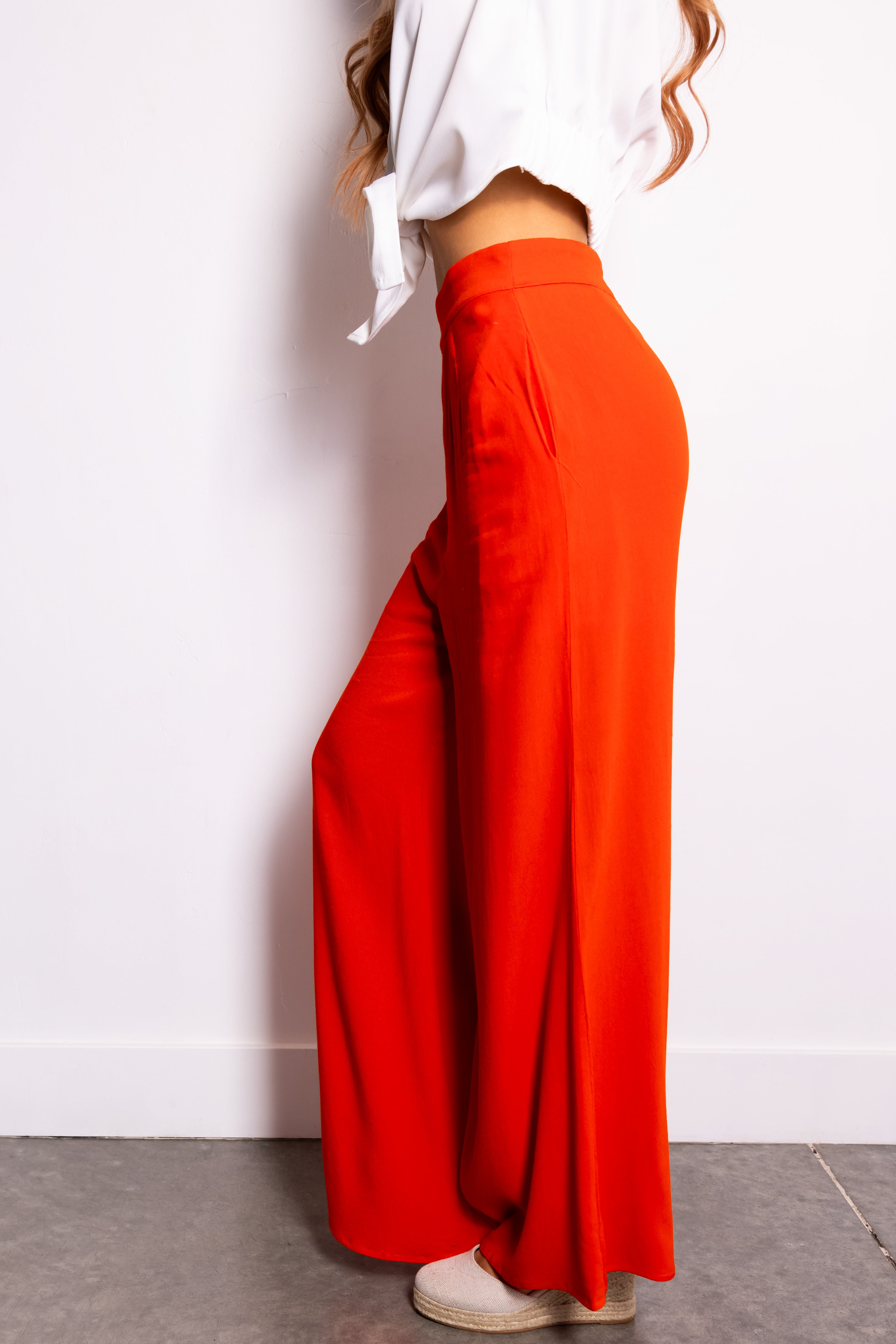 Experience chic comfort with our Bright Fire High Waist Wide Leg Pants in sizes S, M, and L. Featuring a non-stretchy woven fabric, banded high waist, asymmetrical hem, and 2 side pockets, these pants offer a stylish yet functional addition to your wardrobe. Embrace the rayon materials quality, hand wash delicately to maintain its integrity. Perfect for casual or daytime wear, these pants will elevate your style effortlessly. Feel confident and trendy all day long!