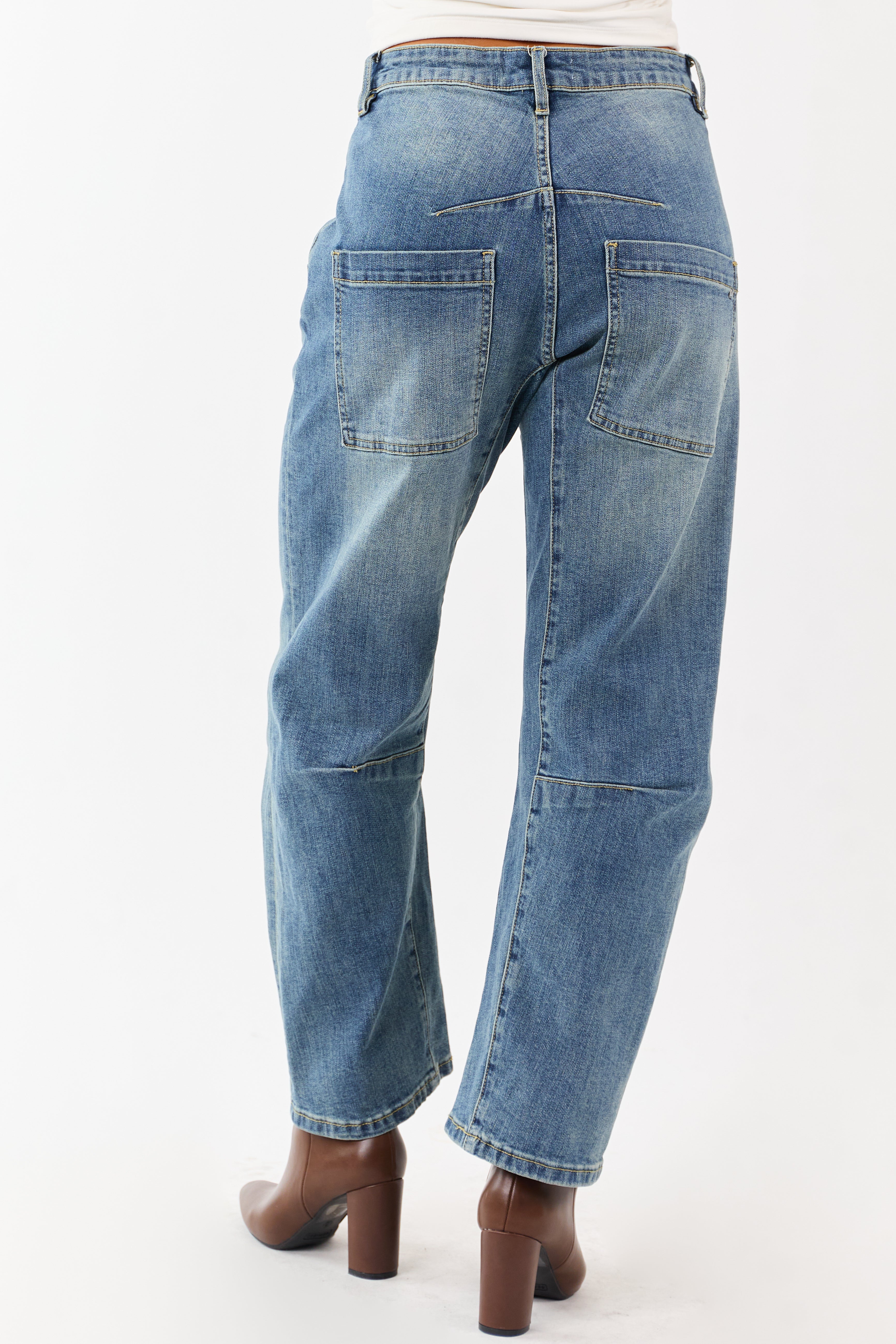 Vintage Wash High Rise Stretchy Barrel Jeans