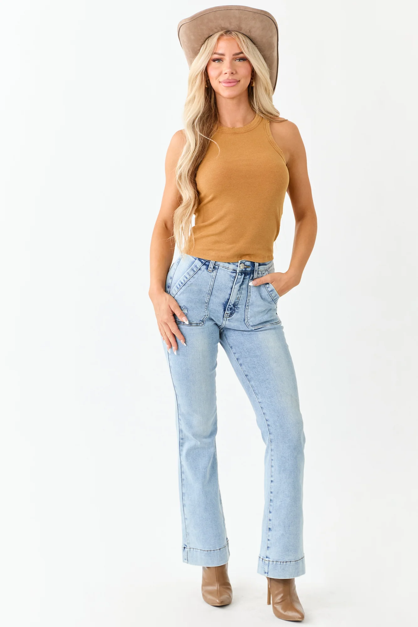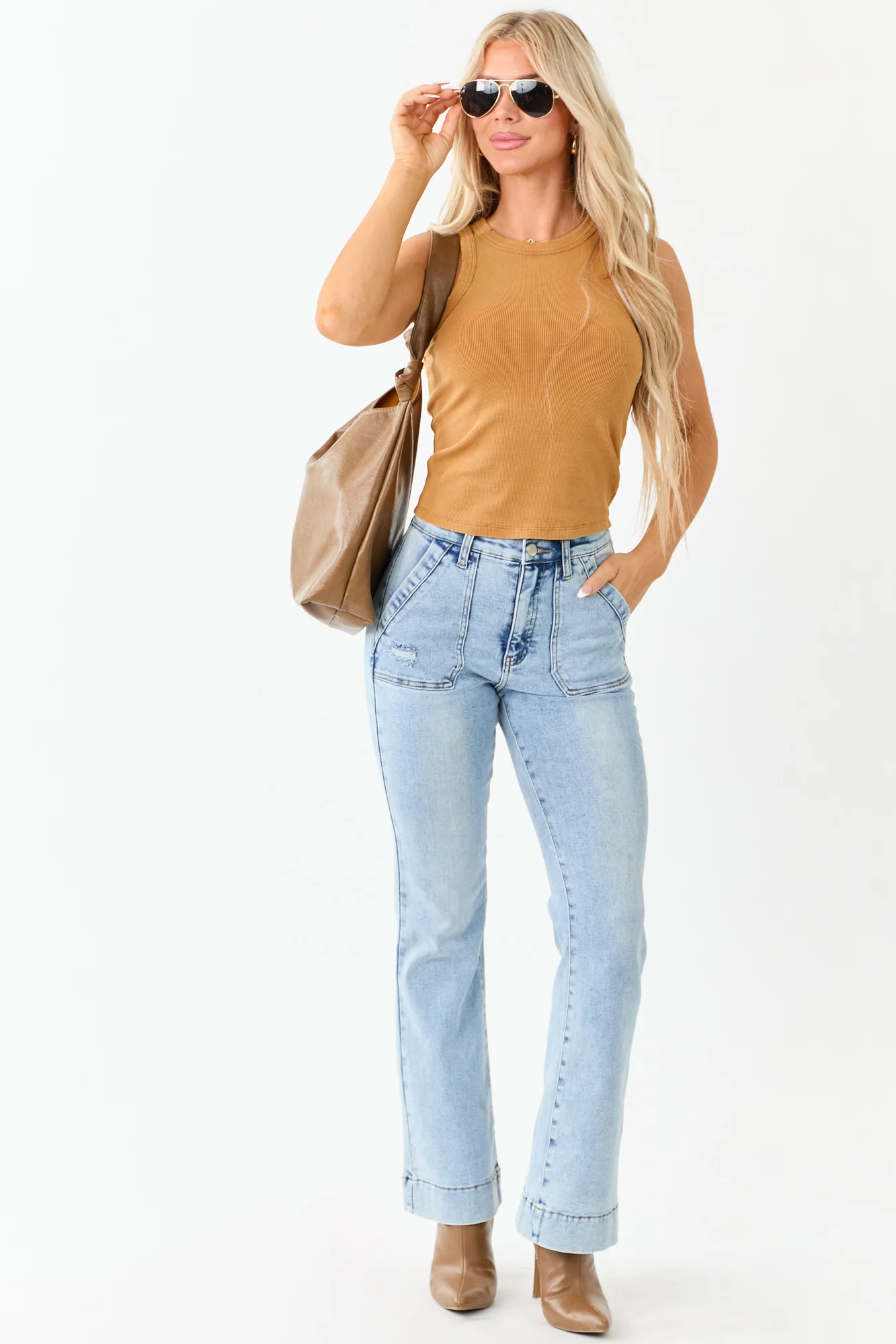 Elevate your wardrobe with this frankie-style tank top featuring eye-catching laser-cut cuff details and a vintage wash. Made of stretchy ribbed knit fabric for ultimate comfort. This tank top is a versatile piece perfect for any occasion. Available in sizes S, M, and L. 79% Cotton, 16% Polyester, 5% Spandex blend. Imported.
