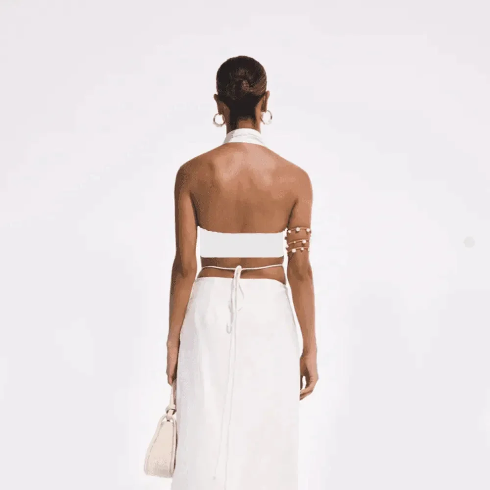 Elevate your wardrobe with our chic White Adjustable Halter Neck Crop Top made from high-quality cotton and spandex. This stylish top features a flattering halter neckline, adjustable ties for a custom fit, and a backless design that highlights your shoulders. Ideal for day-long comfort and durability, this versatile piece pairs perfectly with high-waisted jeans or skirts, creating a trendy and polished outfit for any occasion. Explore effortless elegance with this must-have crop top that enhances any look and offers a complimentary exchange for size adjustments if needed. Discover more style ideas and trends on Instagram @mermaid_way.