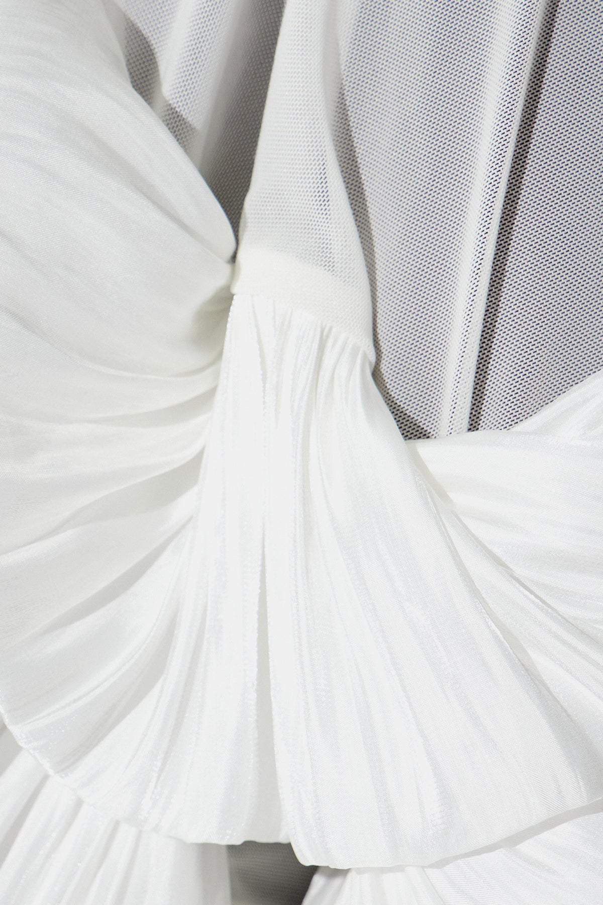 Experience the innovative design of the White Asymmetric Deconstructed Top. Crafted with avant-garde style, this top features a unique asymmetric silhouette and deconstructed elements, blending innovation with refined tailoring. Its versatile design enhances your silhouette, offering a striking piece suitable for any occasion. Add a touch of originality to your wardrobe with this fashion-forward garment. Ideal for those valuing expert craftsmanship and unique style. Slight stretch fabric. Care: Machine wash cold. Please note, color may differ slightly due to lighting during photography.