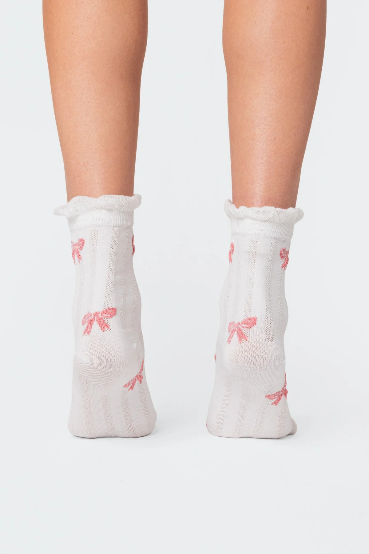 Upgrade your sock game with these charming White Bow Detail Socks featuring a delicate ruffle hem and adorable bow detailing. Made from a comfortable blend of Cotton and Spandex, these socks measure 11.4 inches in length. Care instructions: Machine wash with similar colors. Elevate your style and comfort effortlessly with these cute socks!