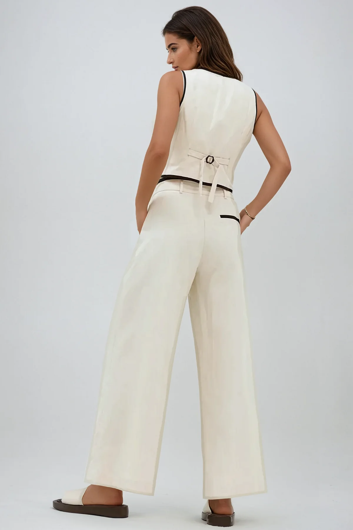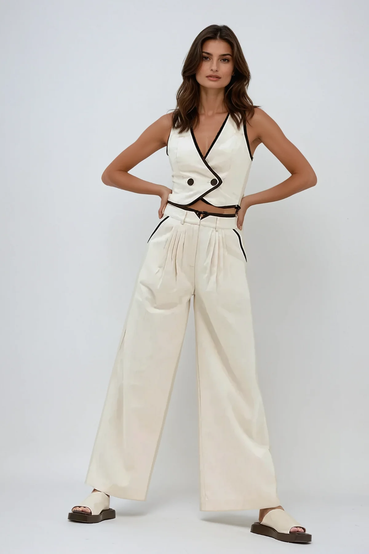 Elevate your wardrobe with the White Buttoned Ruched Plunge Pants Set. Crafted from premium 50% Polyester and 50% Cotton blend, this set showcases a stunning buttoned ruched design and a flattering plunge neckline. Whether for casual outings or special events, this versatile set ensures both style and comfort. Explore boundless fashion possibilities with this essential addition. Color may vary due to lighting conditions in images.