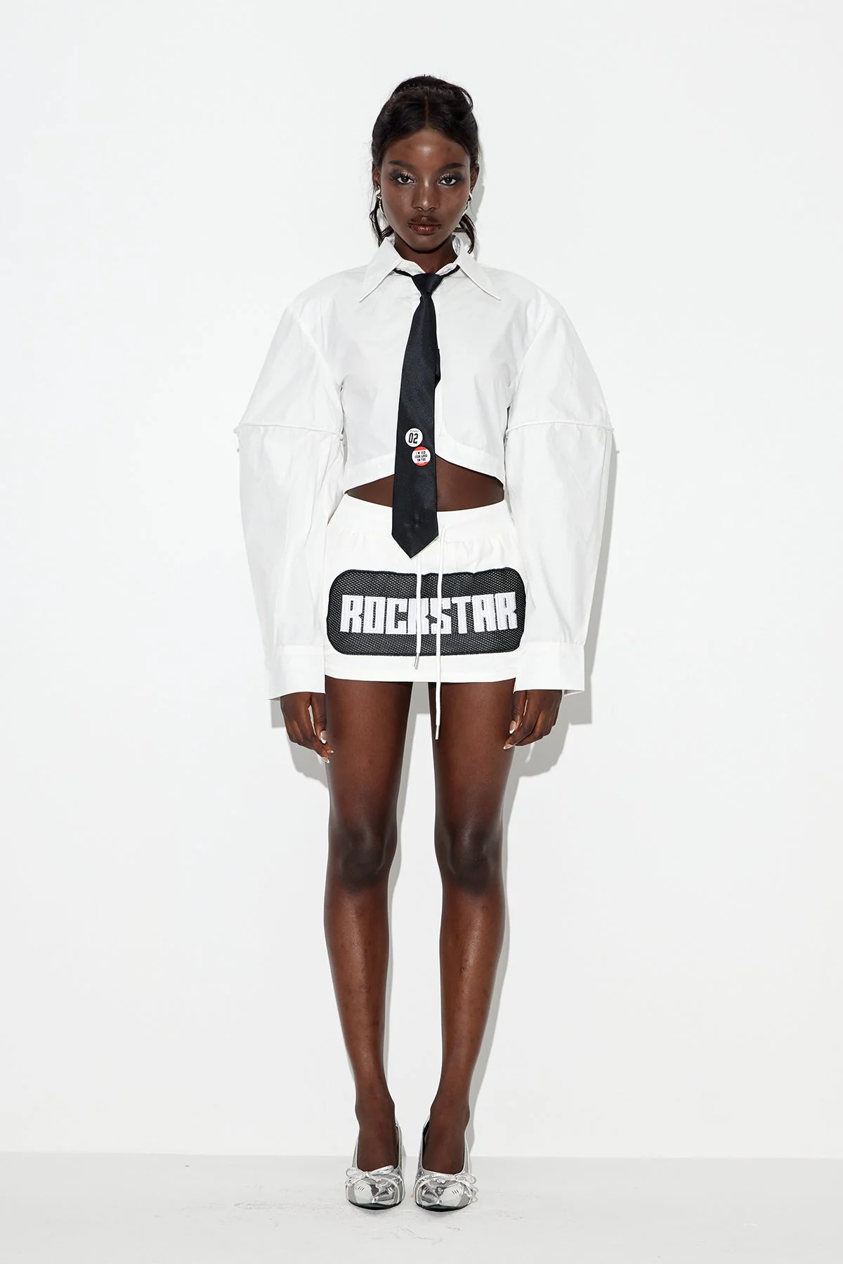 The White Crop Shirt exudes a refined, minimalist silhouette tailored from premium fabric for structured comfort and versatile sophistication. This expertly crafted top features a cropped length ideal for pairing with high-waisted styles, seamlessly blending casual ease with contemporary elegance. Enjoy non-stretchy yet gentle machine wash fabric for easy maintenance. Color variations may occur due to lighting differences. Elevate your wardrobe with this essential piece that offers a clean and crisp look for any occasion.