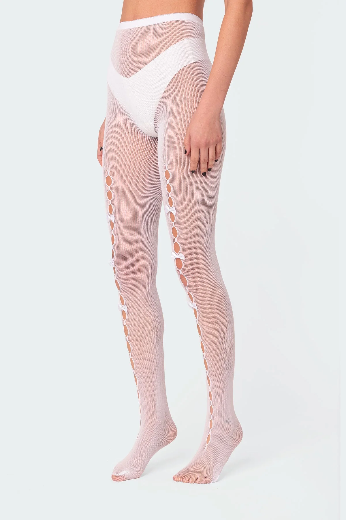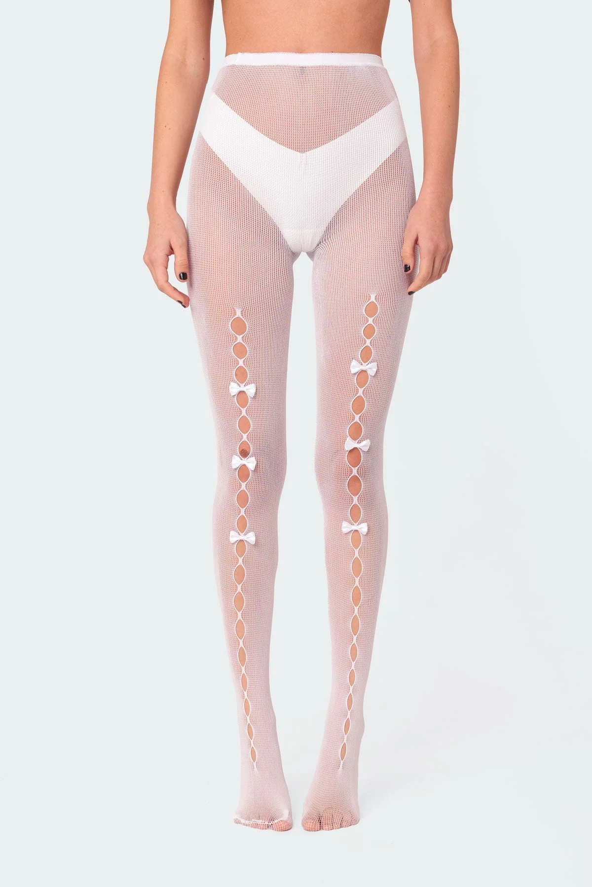 Step up your style game with these stunning White Cutout Bowtie Tights designed for women. Made from polyester and spandex, these tights feature exquisite bowtie cutout detailing that adds a touch of elegance to your outfit. With measurements of Length: 29.1 inches and Width: 5.5 inches, these tights are both fashionable and comfortable. Care for this item by hand washing for lasting quality.