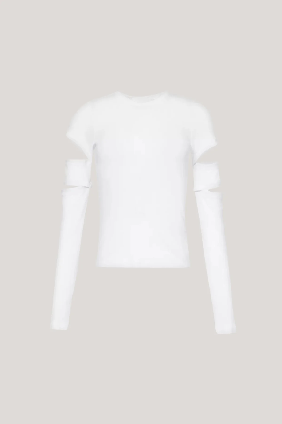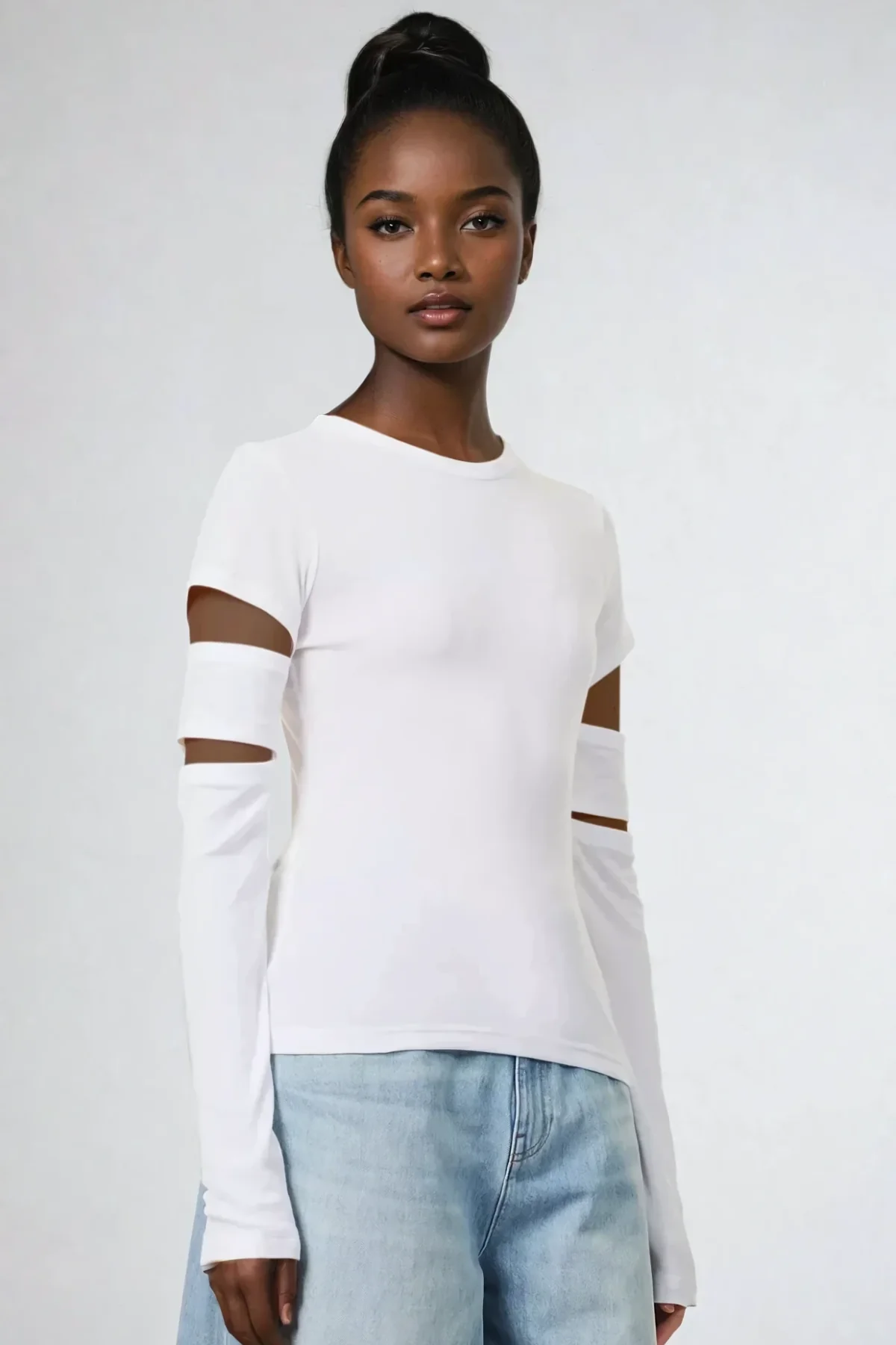 The White Cutout Long Sleeve Top exudes elegance with its intricate design details. Made from high-quality materials with a slight stretch, this top is perfect for any occasion, blending comfort with style effortlessly. Whether its for work or a night out, this top will be your go-to choice. Crafted from 50% Polyester and 50% Cotton, this top offers both durability and comfort. Suitable for gentle machine wash. Please note that the color may vary slightly due to lighting effects. Upgrade your wardrobe with this chic essential!