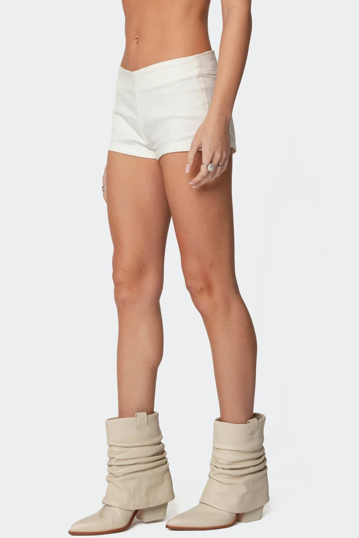 Discover the comfort and style of our White Denim Micro Shorts. Crafted from stretch denim fabric, these low rise shorts feature side slit detailing for a modern touch. Perfect for casual outings or warm weather days, these shorts offer both style and versatility. The model wears size S with an inseam of 1.8 inches and a height of 58″. Care instructions: Machine wash at a maximum of 30ºC with similar colors, do not bleach, do not tumble dry, iron at a maximum of 110ºC, do not dry clean.