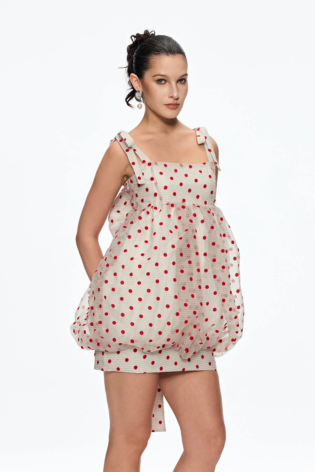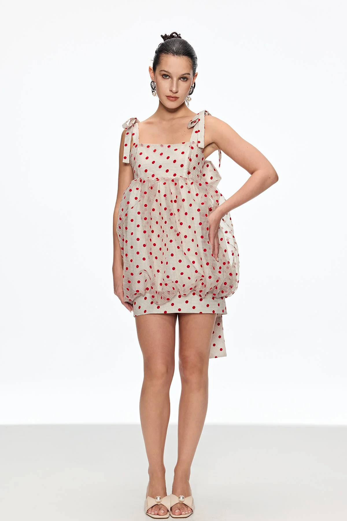 Indulge in timeless elegance and modern charm with the White Dot Grid Bow Mini Dress. This flattering silhouette features a delicate dot grid pattern and a charming bow detail, perfect for various occasions. Carefully crafted for comfort and style, this mini dress is a versatile wardrobe essential suitable for both casual outings and special events. Its non-stretch fabric requires gentle machine washing. Note: Colors may vary slightly due to lighting in images.