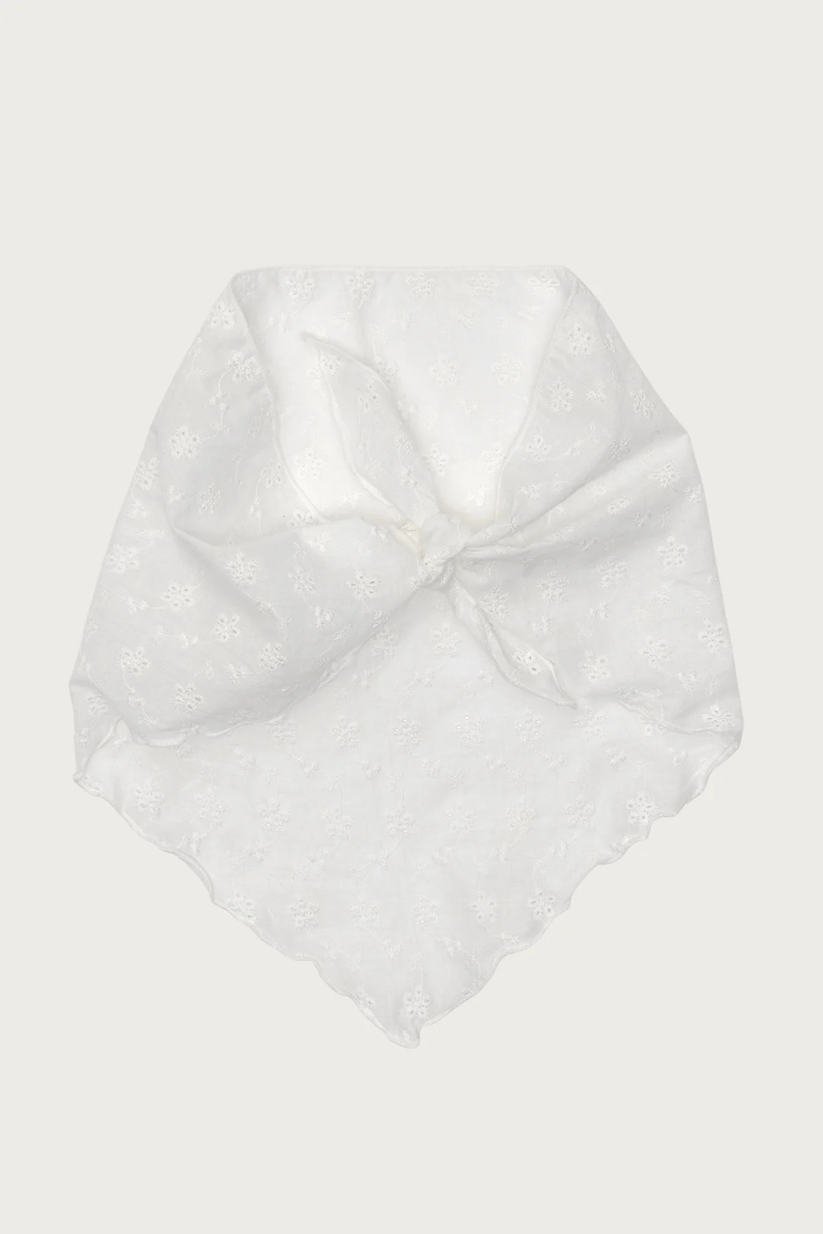 This white hair scarf features eyelet fabric with a stylish lettuce hem. Made of a blend of cotton and polyester, this versatile accessory measures approximately 13.8 inches in length. Care instructions: Machine wash with similar colors to keep it fresh and vibrant.