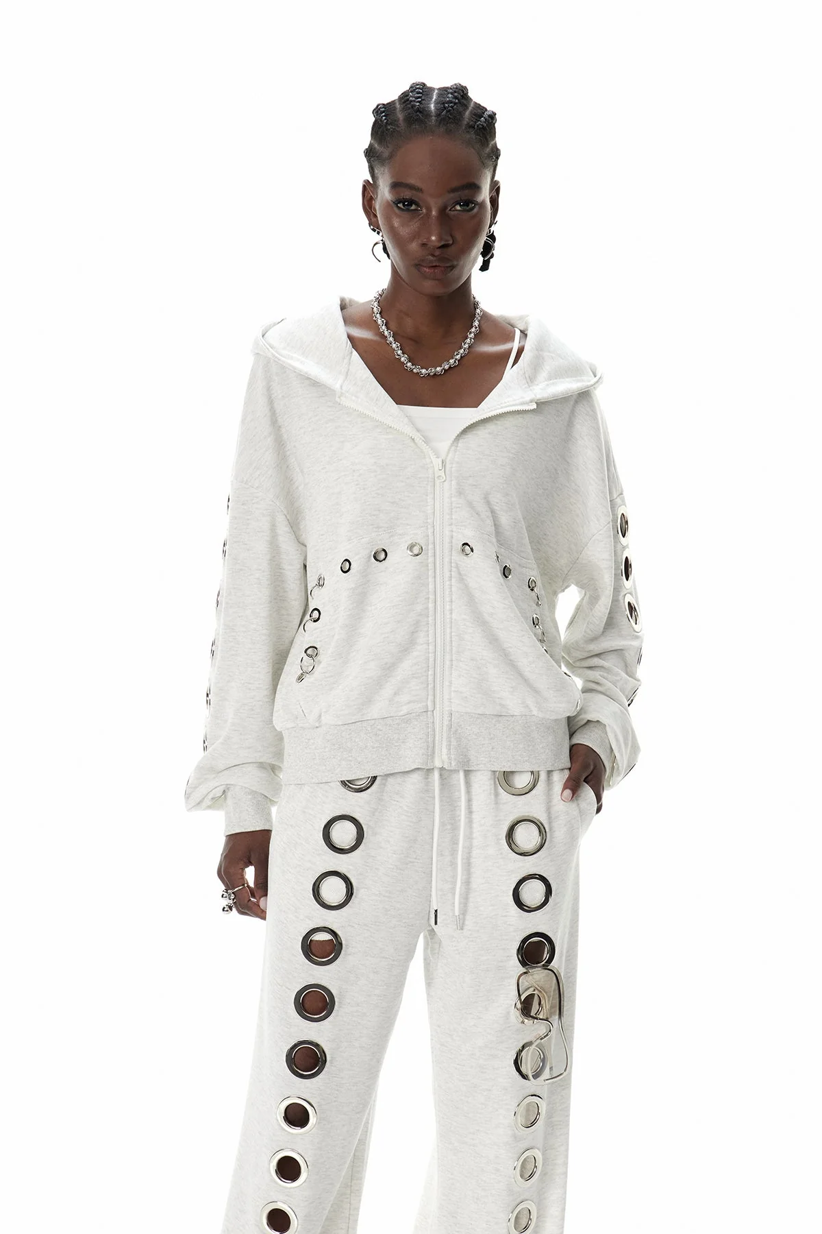 Experience refined craftsmanship with the White Eyelet Hooded Outdoor Jacket for Women. Strategically placed eyelets provide enhanced ventilation, ensuring comfort in all conditions. The adjustable hood offers personalized coverage, while premium materials ensure durability and protection against the elements. This versatile outer layer balances practicality with modern style. Ideal for urban adventurers seeking functional design.