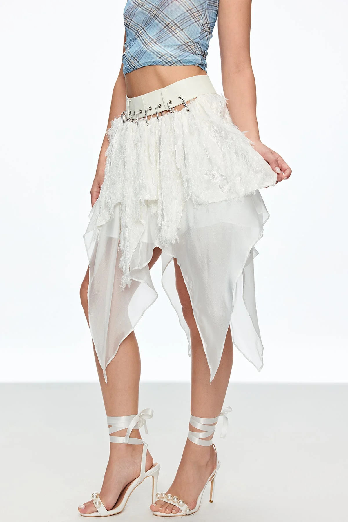 Elevate your wardrobe with the White Feather Asymmetric Mini Skirt . This skirt combines modern design with delicate feather detailing, creating a sophisticated and avant-garde look. The asymmetric cut and feather accents add visual interest, making it a standout piece for both casual and formal ensembles. Crafted for those who value edgy style and elegant craftsmanship. Note: Color may vary due to lighting effects. Experience the perfect balance of unique style and expertly crafted fashion.