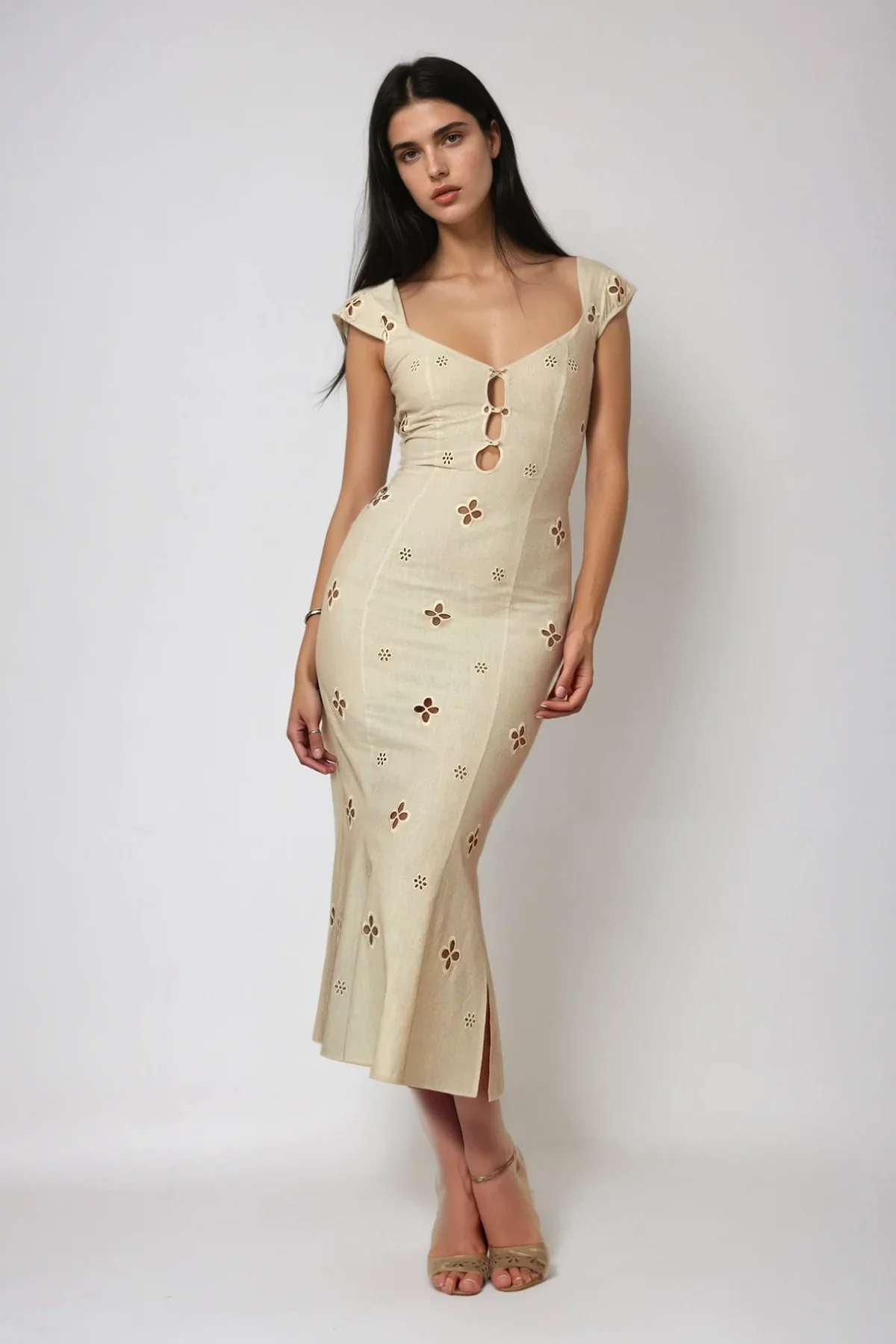 The White Floral Cutout Midi Dress combines elegant floral design with modern cutout details, offering a sophisticated silhouette that flatters the figure. Crafted for comfort and style, this midi dress is perfect for both daytime events and evening occasions, providing a refined yet contemporary look. Its thoughtful construction ensures ease of movement while highlighting feminine charm. Ideal for those seeking a polished and distinctive wardrobe staple. This White Floral Cutout Midi Dress is a must-have addition to your collection. The non-stretch fabric allows gentle machine wash. Please note that color may vary due to lighting conditions during photography sessions.