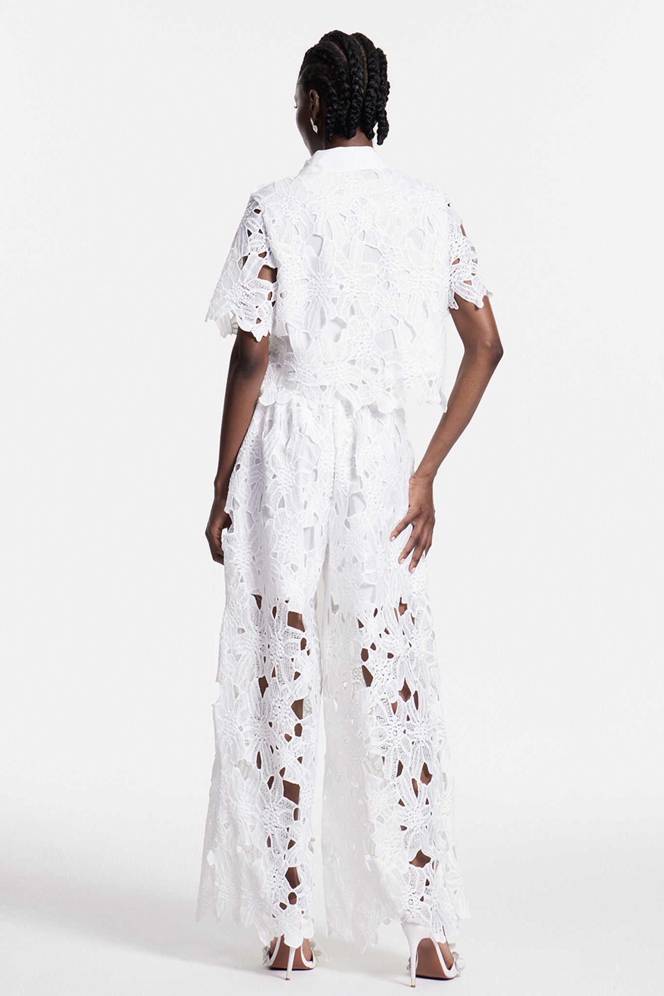 The White Floral Cutout Pants Set blends delicate floral cutout details with contemporary tailoring, offering a sophisticated silhouette. This set ensures comfort and style with breathable fabric and a flattering design suitable for both casual outings and upscale events. Elevate your wardrobe with a unique touch of femininity and modern appeal. This non-stretch set is easy to clean with gentle machine wash. Note: Color may vary under different lighting conditions.