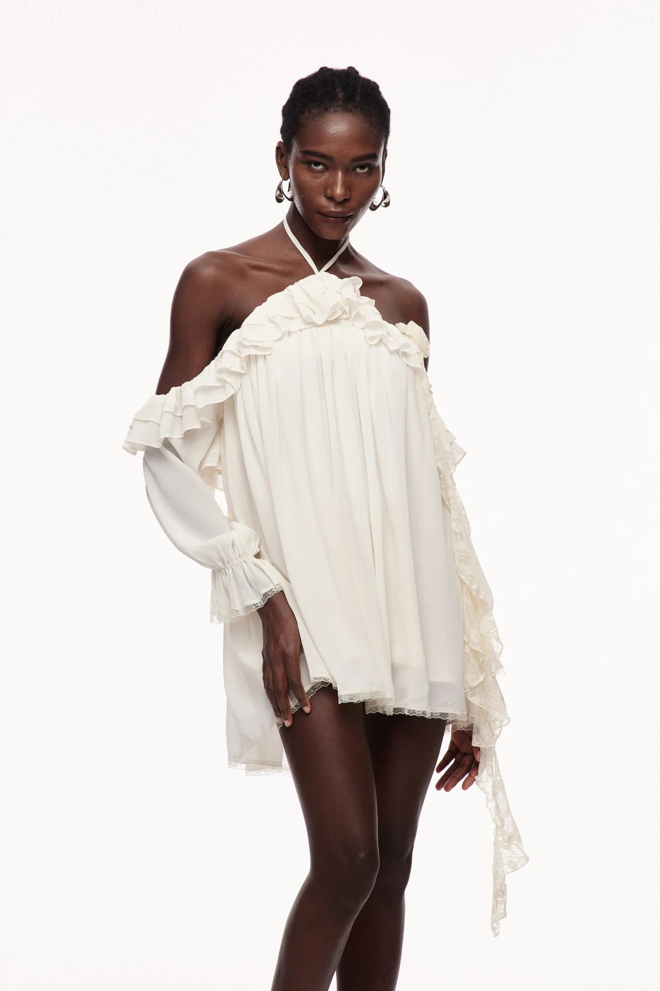 Elevate your wardrobe with the White Floral Ruffle Fringe Mini Dress expertly designed to blend delicate floral accents with playful fringe detailing. This mini dress offers a flattering silhouette enhanced by soft ruffles, perfect for sophisticated occasions or stylish daytime events. Crafted to provide both comfort and elegance, it ensures you stand out with refined charm and contemporary flair. This dress has a slight stretch for added comfort. Gentle machine wash recommended. Please note: Color may vary slightly due to lighting in images.
