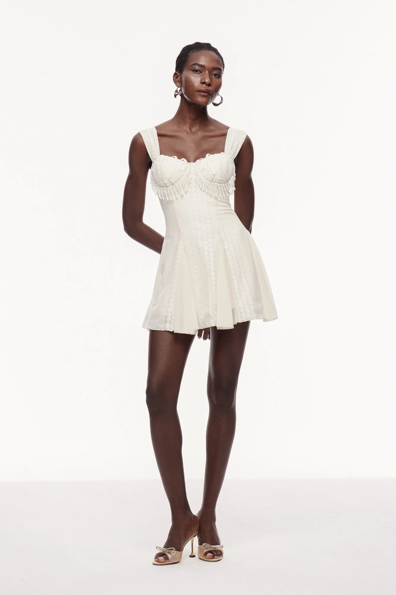 The White Fringe Ruffle Mini Dress showcases exceptional craftsmanship with charming fringe details and layered ruffles, creating a dynamic yet flattering silhouette. Ideal for special occasions, this dress blends sophistication with a touch of youthfulness for a standout style. Enjoy non-stretch comfort and gentle machine wash care. Note: Colors may vary slightly due to lighting in images.
