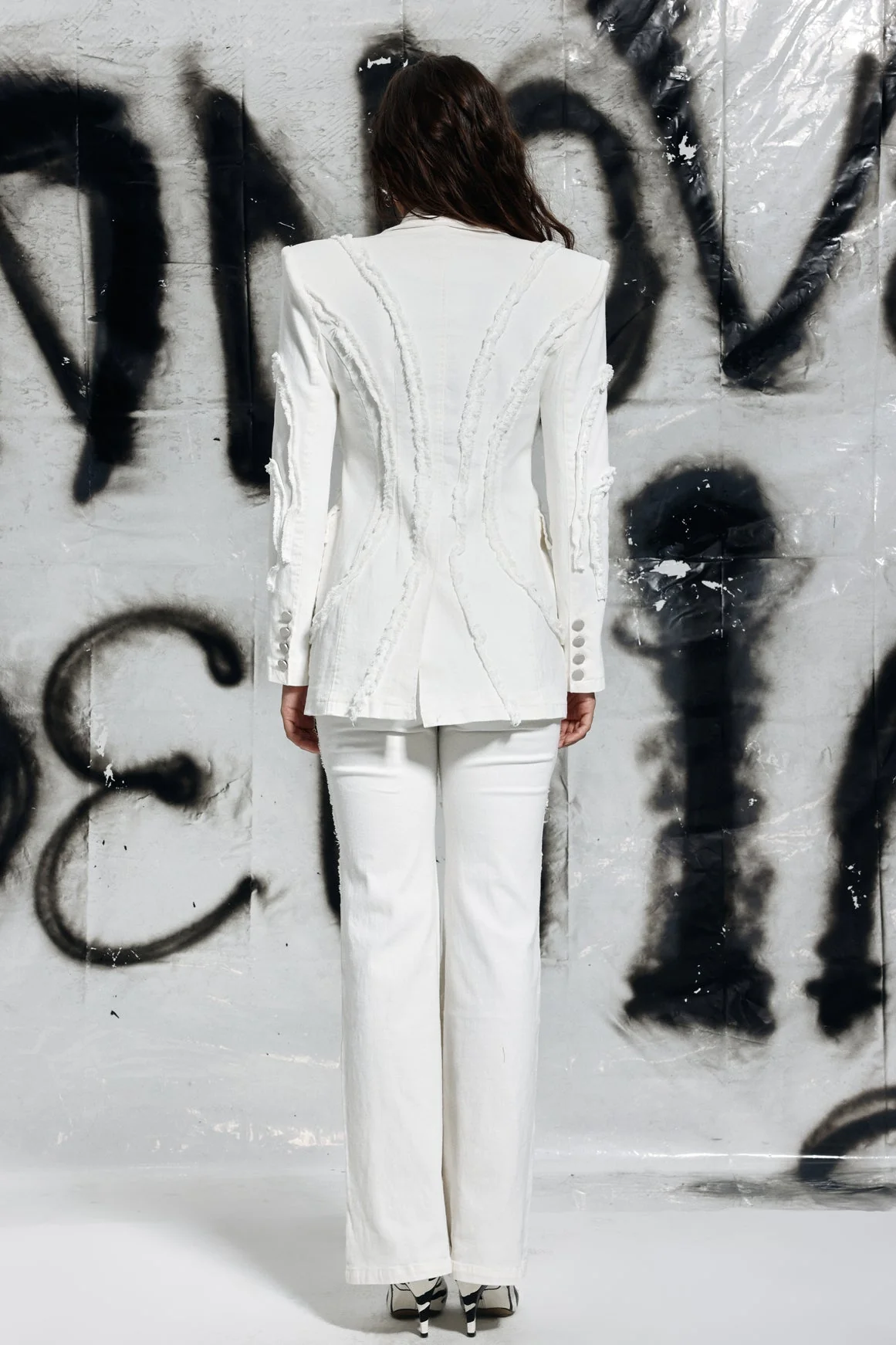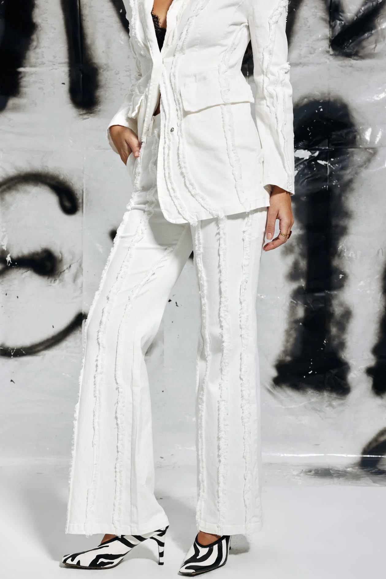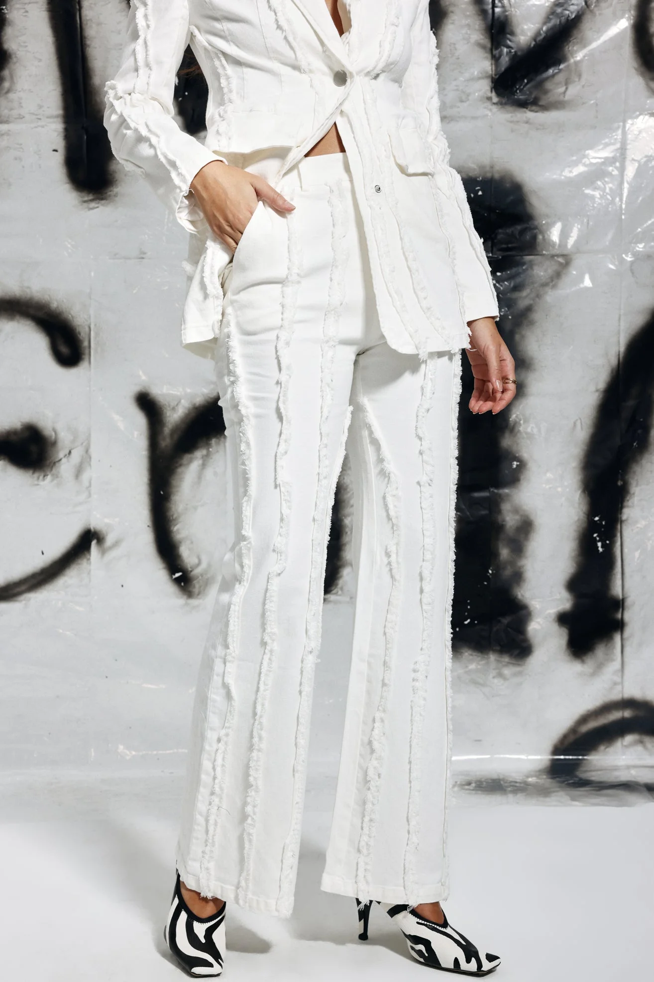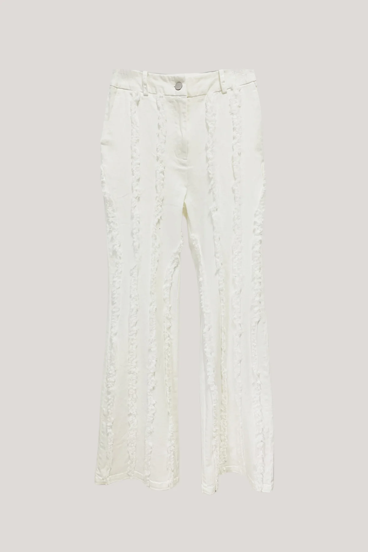 Elevate your fashion game with the White Fringe Stripe Womens Jeans . Made with high-quality 100% Polyester, these jeans offer both style and durability. The unique fringe stripe design adds a flair to your outfit, making it a chic essential for your wardrobe. Enjoy the comfort of gentle machine wash care. Please note, color may vary due to image lighting. Get ready to stand out in style with these fashionable jeans.