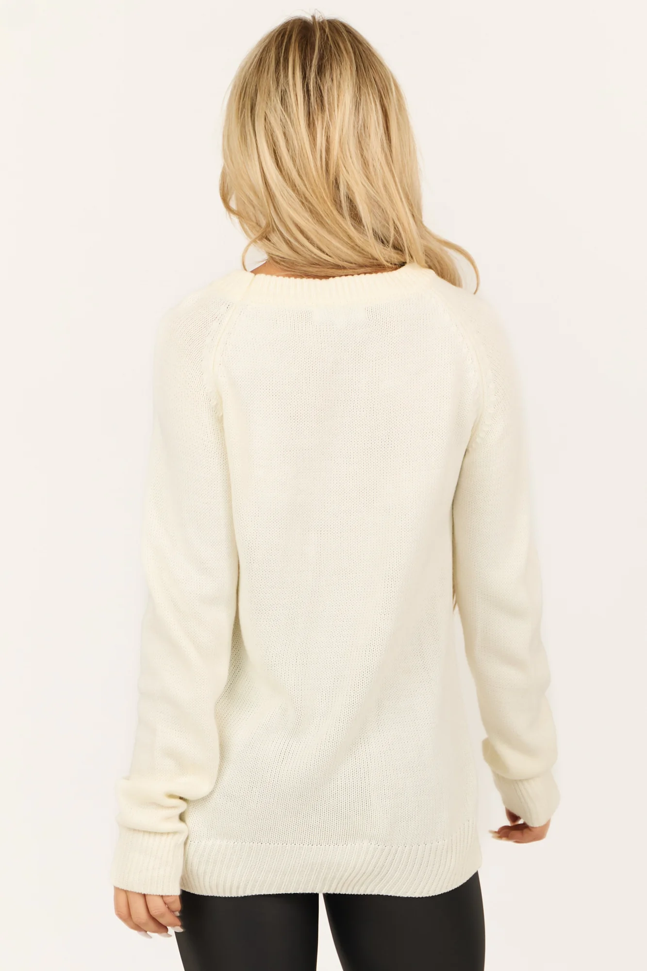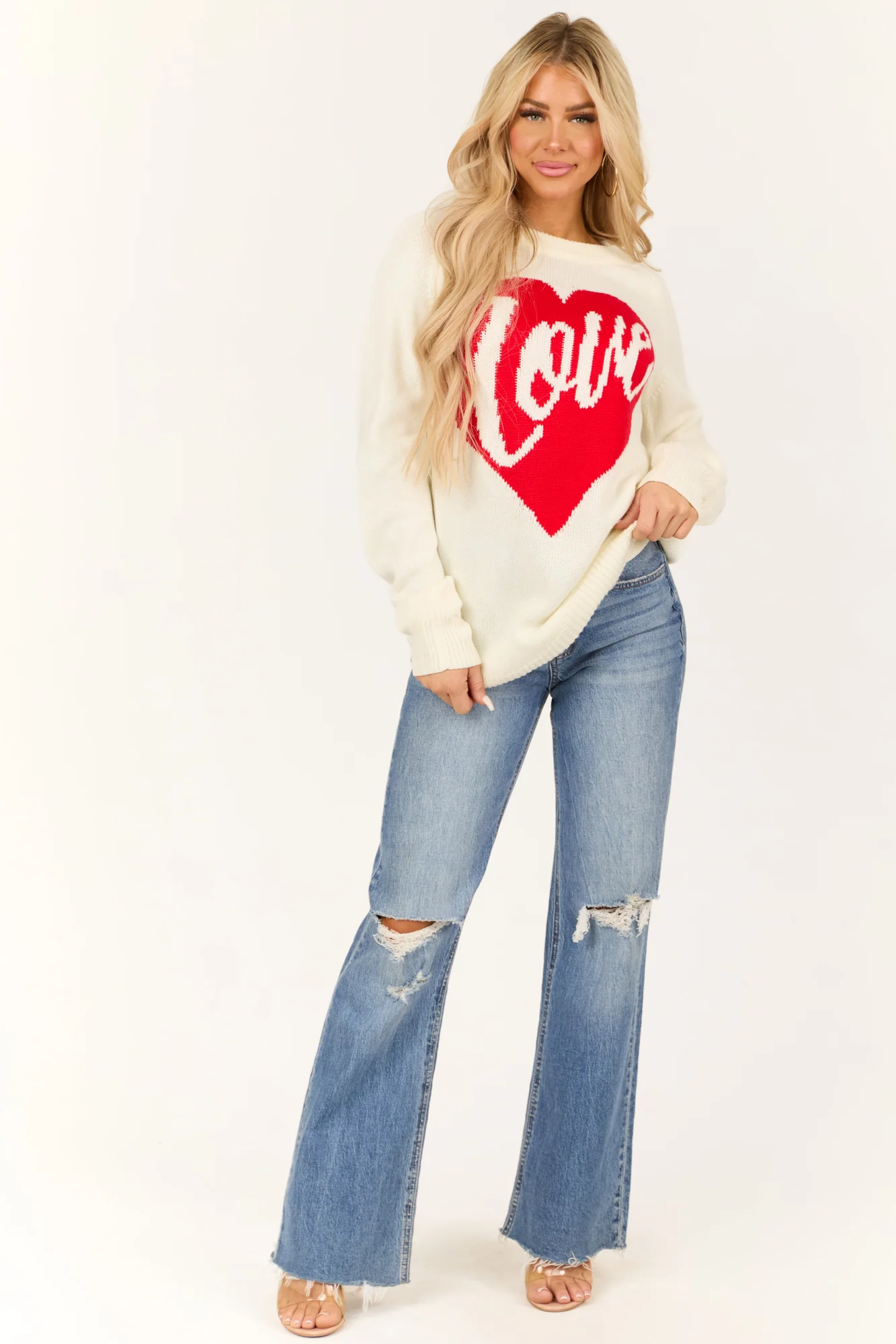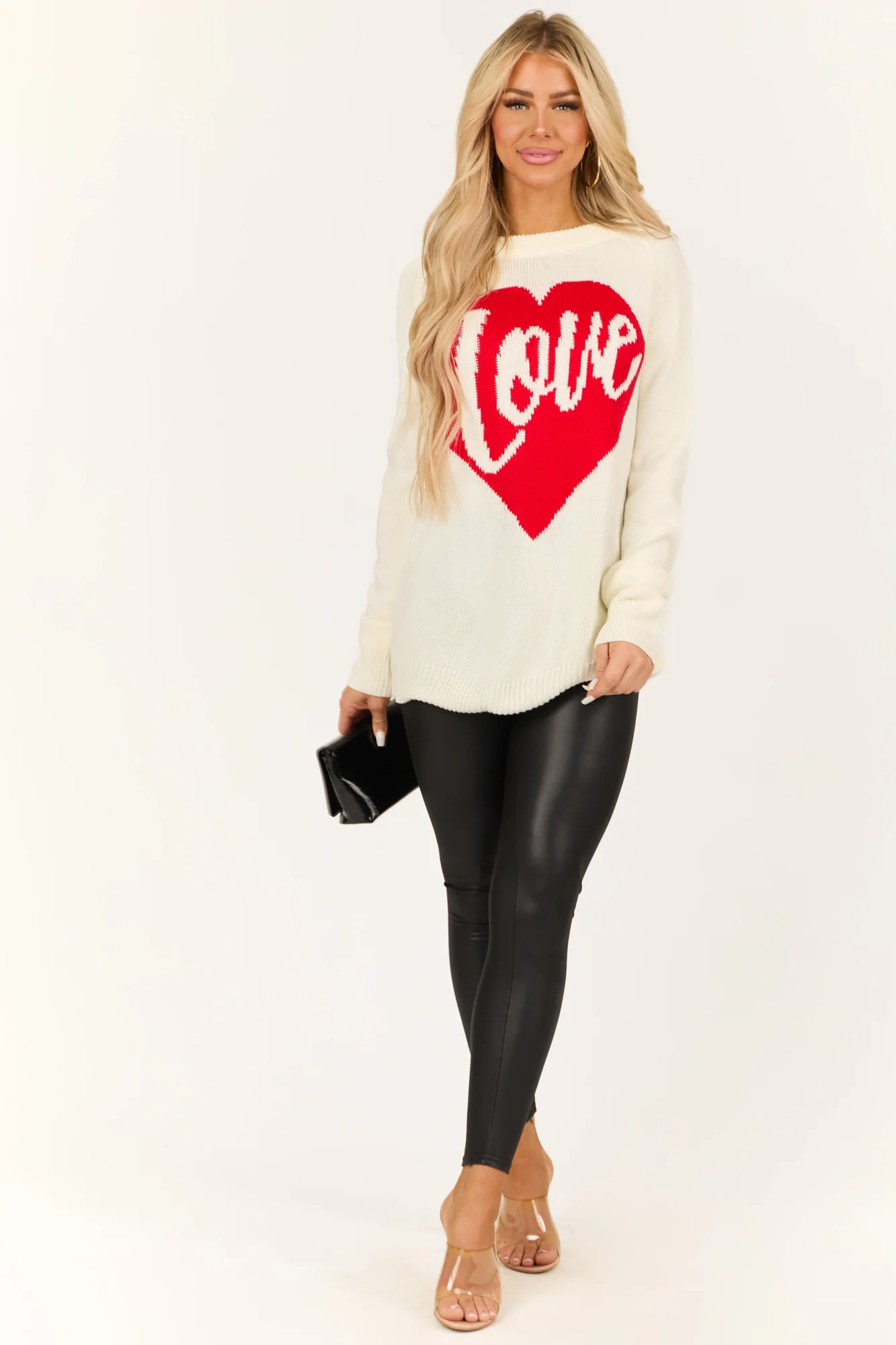 Stay cozy and stylish with our White Heart Graphic Long Sleeve Sweater. This loose-fit, semi-stretchy knit sweater features a charming ruby heart graphic on the front, complemented by raglan sleeves and ribbed details on the neckline, cuffs, and hemline. Made of 100% acrylic, this sweater is versatile and ideal for casual or daytime wear. Available in sizes S, M, L, and XL. Care instructions: Line dry, avoid bleach, medium heat ironing, no dry cleaning needed.