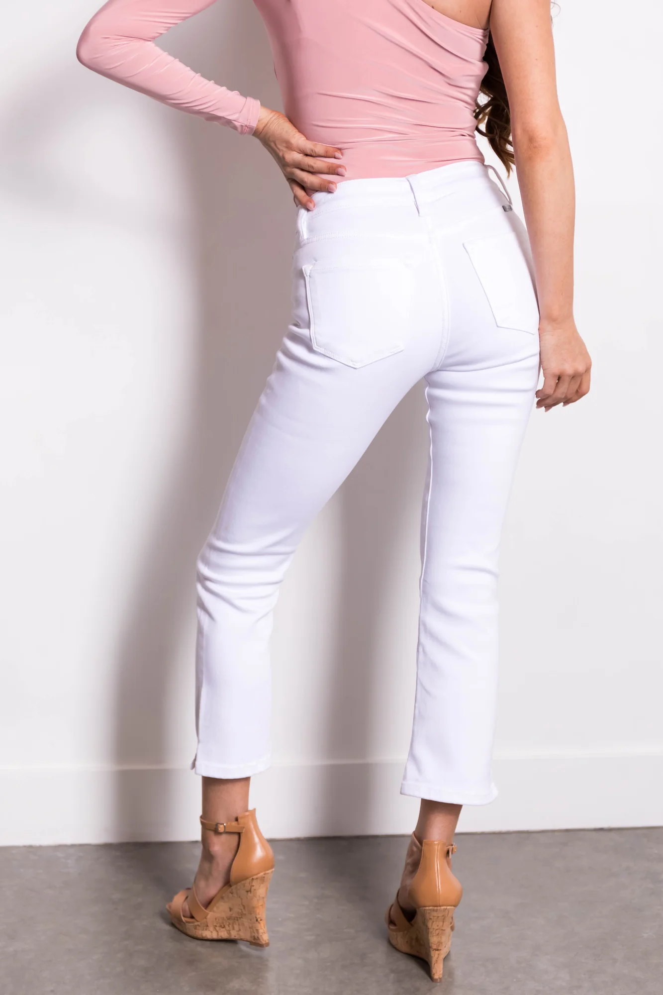 Step out in style with these White High Rise Kick Flare Jeans . Made of 57% Cotton, 35% Modal, 6% Polyester, and 2% Spandex, these jeans feature a semi-stretchy denim construction for a comfortable fit. With a zippered fly, button closure, five pockets, belt loops, and a slit hem, these high-rise jeans offer both fashion and functionality. Available in various sizes from 1 to 15, these jeans fit true to size. Pair them with your favorite top for a chic and trendy look thats perfect for any occasion. Note: Machine wash cold with like colors, do not bleach, tumble dry low, low iron if needed.