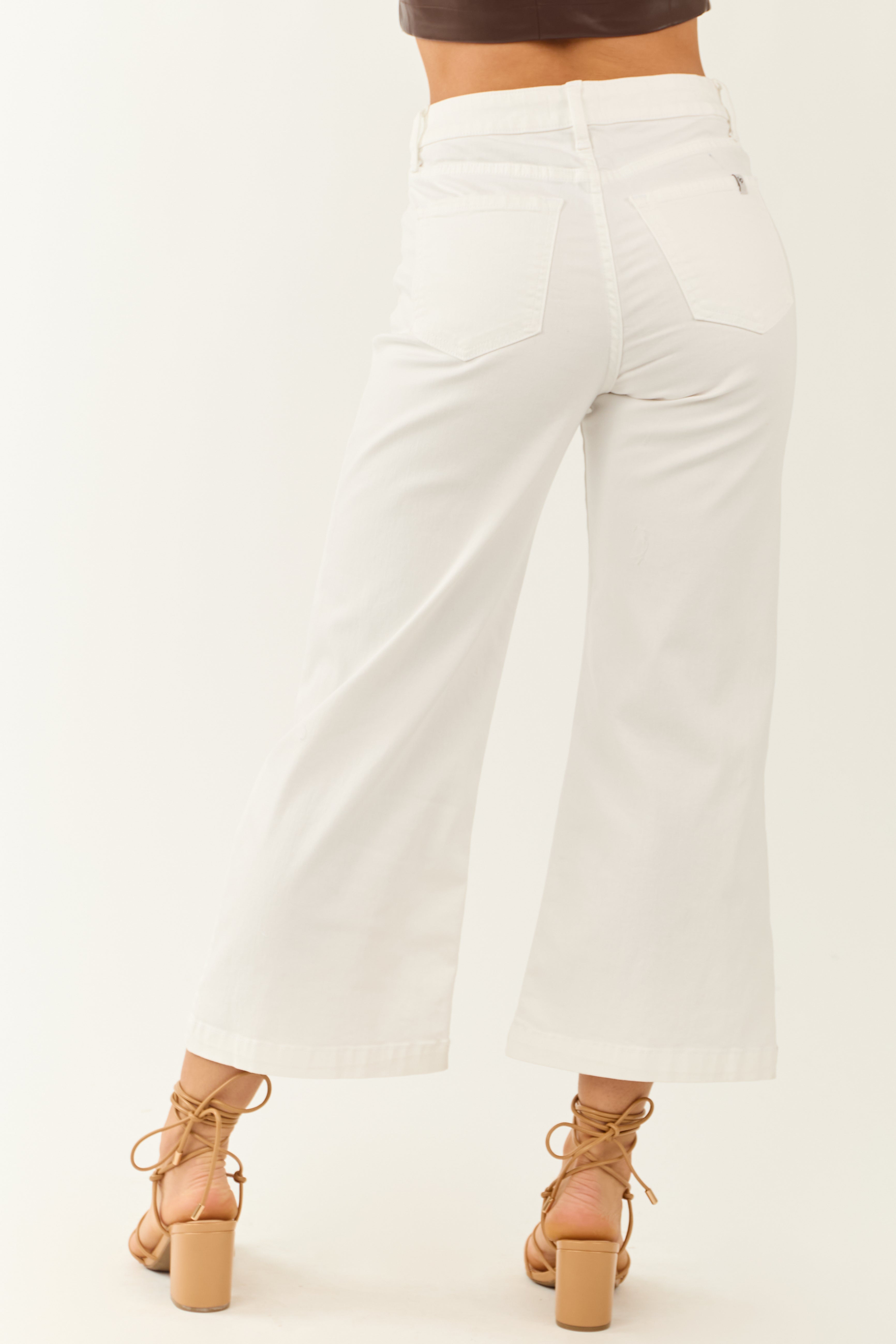 Discover the perfect balance of style and comfort with our White High Rise Stretchy Wide Leg Jeans. Crafted from semi-stretchy denim, these jeans feature a cropped length with a zipper fly and button closure for a sleek look. The high rise design and wide leg silhouette offer a flattering fit that exudes confidence. Complete with four pockets and belt loops, these jeans blend fashion with functionality effortlessly. Made of 65% Cotton, 31% Rayon, 2% Elasterell-Poly, and 2% Spandex. Elevate your wardrobe with these versatile jeans that are ideal for various occasions.