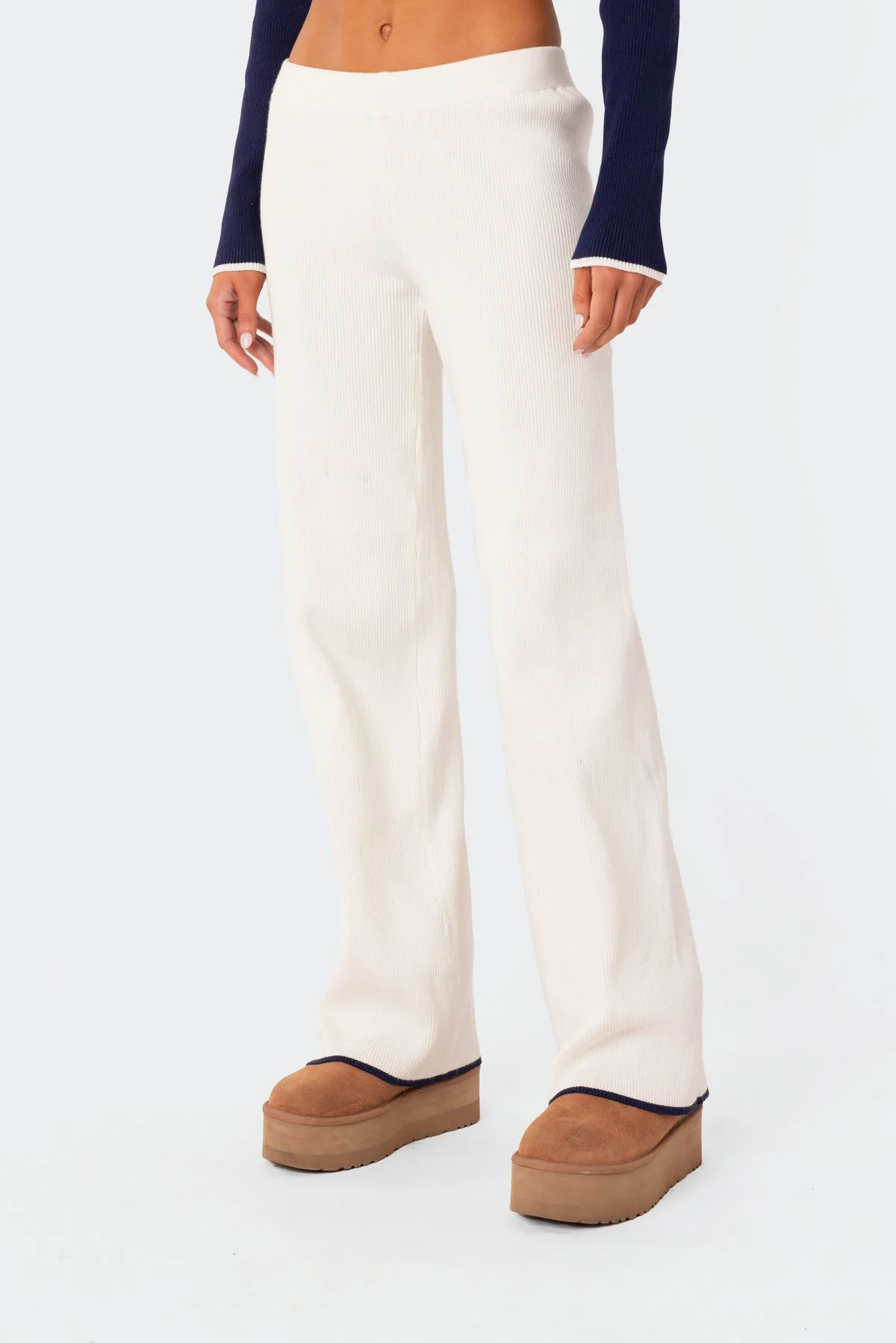 Discover ultimate comfort in our White Knitted Low Rise Pants for women. Crafted from Polyester and Rayon, these pants feature a straight leg design and low-rise waist for a trendy look. Feel confident and stylish all day long. The model wears a size S and stands at 59″ tall. Care Instructions: Machine wash with similar colors.