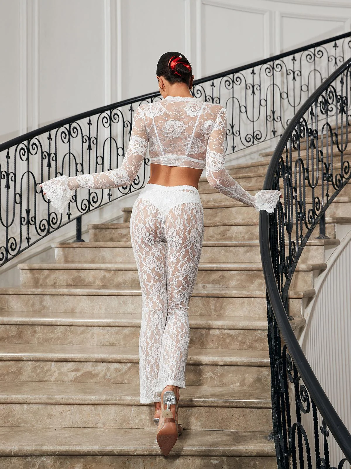 Elevate your style with this elegant White Lace Crop Top featuring a charming floral pattern. Made from lightweight lace fabric, this top boasts a daring cropped length for a fashion-forward look. Ideal for any adventure, this top offers slight stretch for comfort. Hand wash cold for easy care. Note: Color variations may occur due to lighting. Images reflect true color. Model size: S.