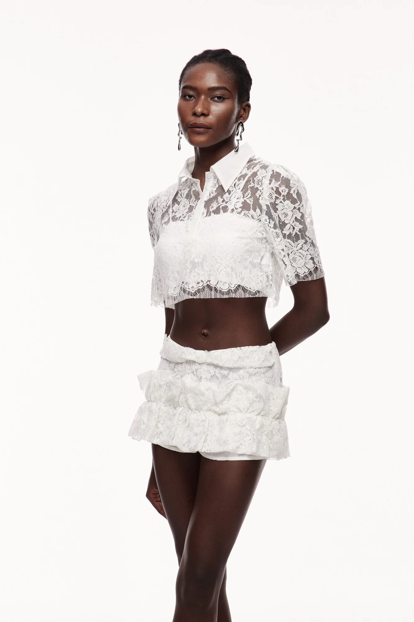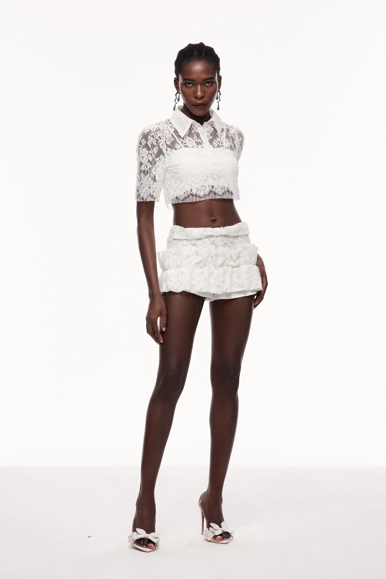 Elevate your wardrobe with the White Lace Cutout Bow Skirt Set, featuring delicate lace detailing, modern cutout accents, and stylish bow for a flattering silhouette. This set offers elegance and contemporary flair, perfect for sophisticated occasions, balancing intricate design with comfortable wearability. Experience standout style with expert tailoring, suitable for those seeking refined fashion choices. Stretch Factor: Non-Stretch. Clean: Gentle machine wash. Color may vary due to lighting on images.
