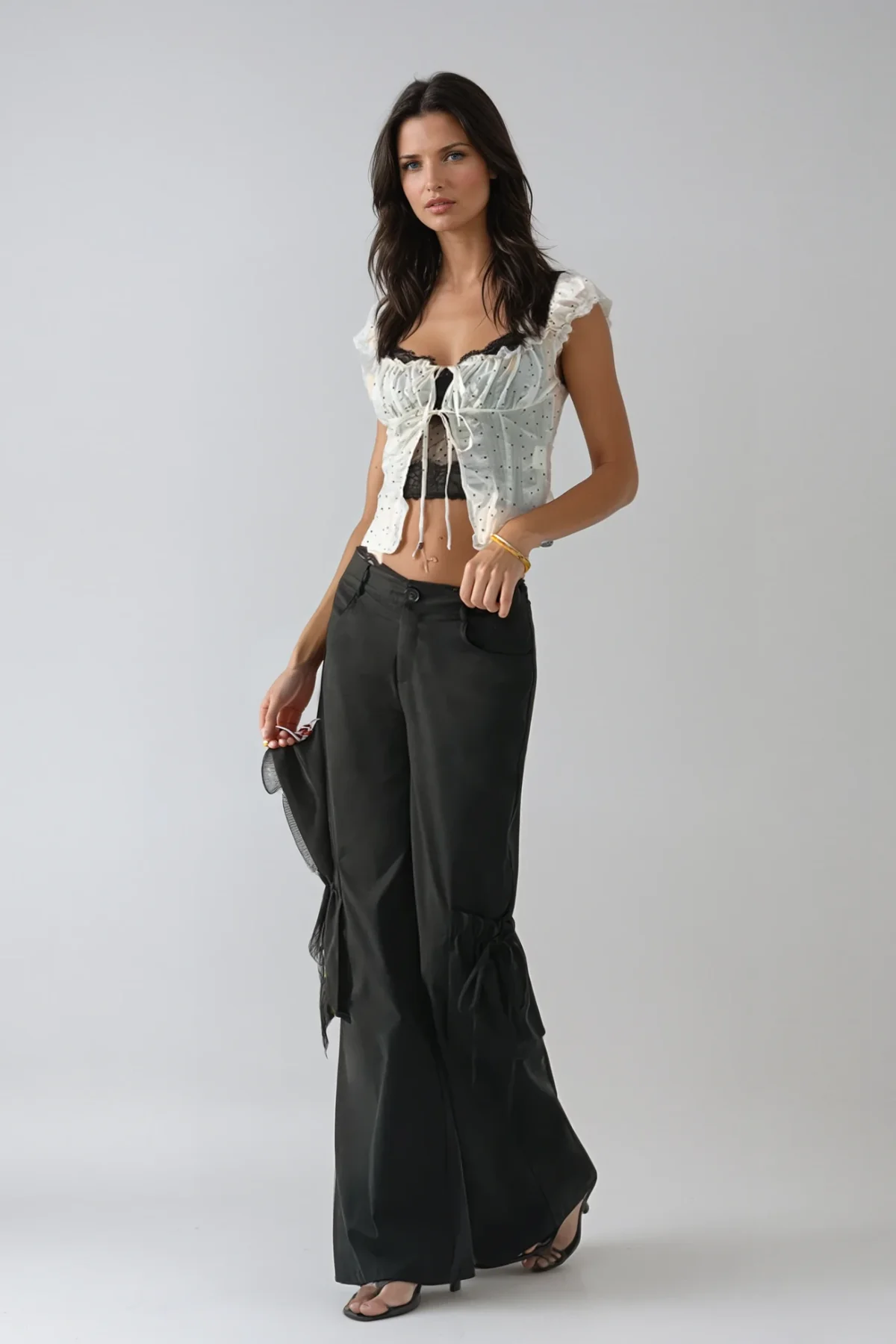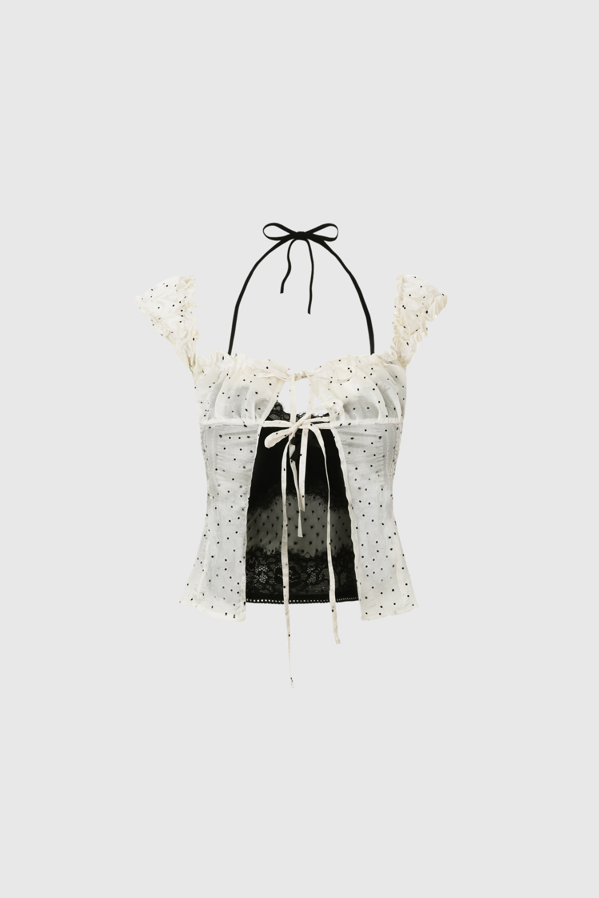 Indulge in sophistication with our White Lace Dot Top exuding timeless charm. This elegant blouse features delicate lace detailing and a subtle dotted pattern, perfect for layering or standalone wear. Expertly designed for comfort and style, it offers a flattering fit and unmatched refinement. Elevate your ensemble with this versatile piece that seamlessly blends grace with modern allure. This top is a non-stretch garment that requires gentle machine washing. Please note, color may vary slightly due to lighting conditions.