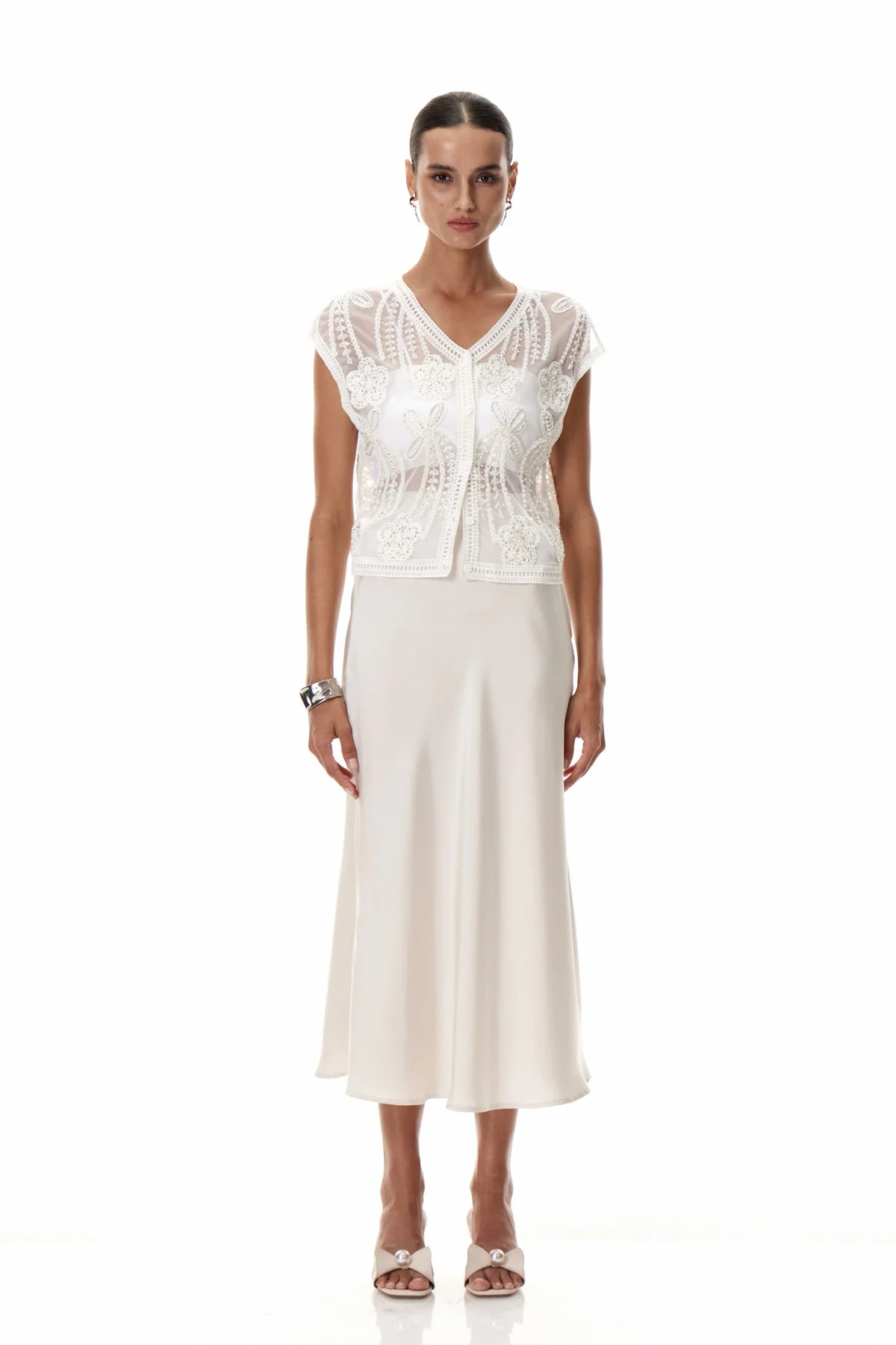 Elevate your wardrobe with the White Lace Embroidered Top featuring intricate lace detailing and delicate embroidery. This chic essential offers a sophisticated silhouette for both day and night, crafted from breathable fabric ensuring comfort and elegance. Ideal for various occasions. Non Stretch Material. Care: Gentle machine wash. Lighting may affect color perception.