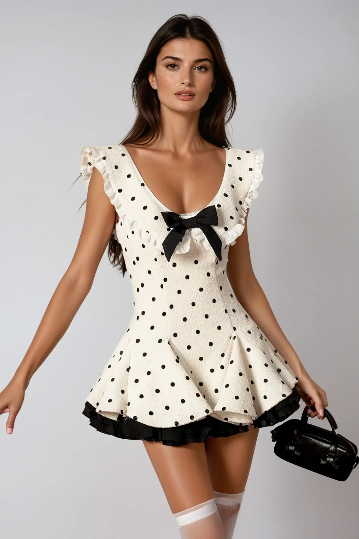 Elevate your style with the White Lace Ruffle Mini Dress. This stunning piece features delicate lace, a flattering plunge neckline, and charming ruffle details, making it ideal for any special occasion. Expertly crafted from 50% Polyester and 50% Cotton, this dress exudes timeless elegance and chic vibes. Whether its a formal event or a casual gathering, this dress is a must-have in every fashion-forward individuals wardrobe. Color may vary under different lighting conditions. To clean, prefer gentle machine wash for long-lasting glamour.