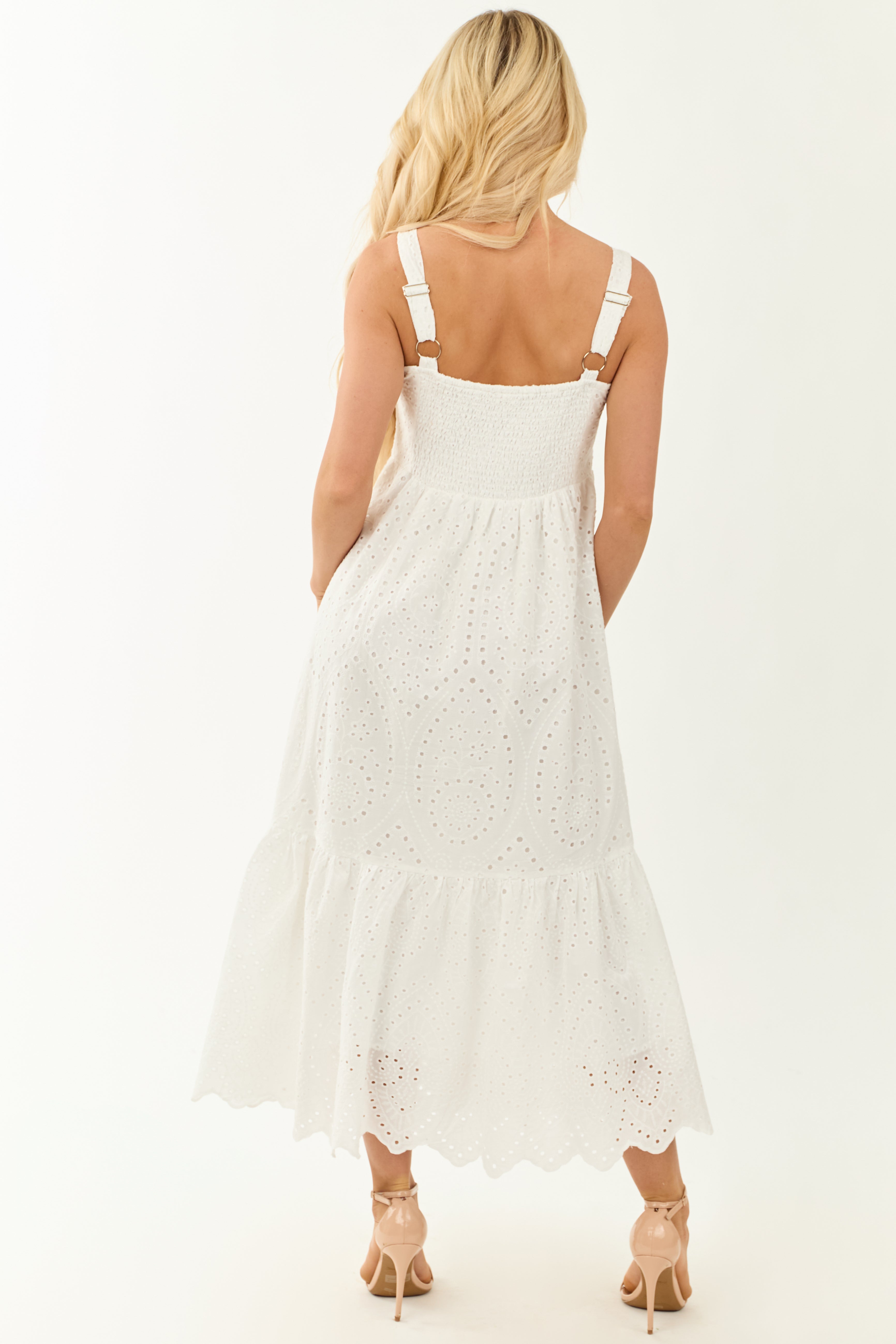 This gorgeous lace maxi dress exudes elegance and romance from head to toe. Featuring a sweetheart neckline, scalloped hem, and adjustable straps, it offers a flowing fit perfect for various occasions. The smocked back provides extra room, while the 100% cotton self and 100% rayon lining enhance comfort. Whether for a special event or a casual outing, this dress makes a bold fashion statement.