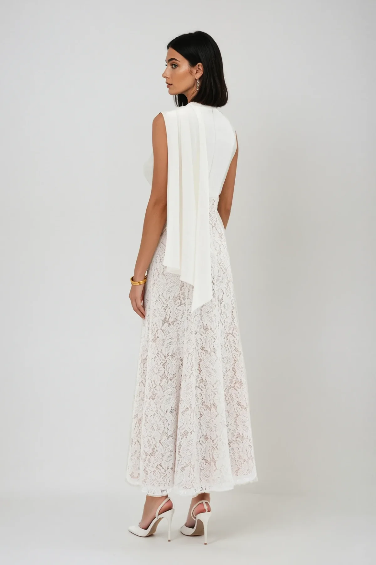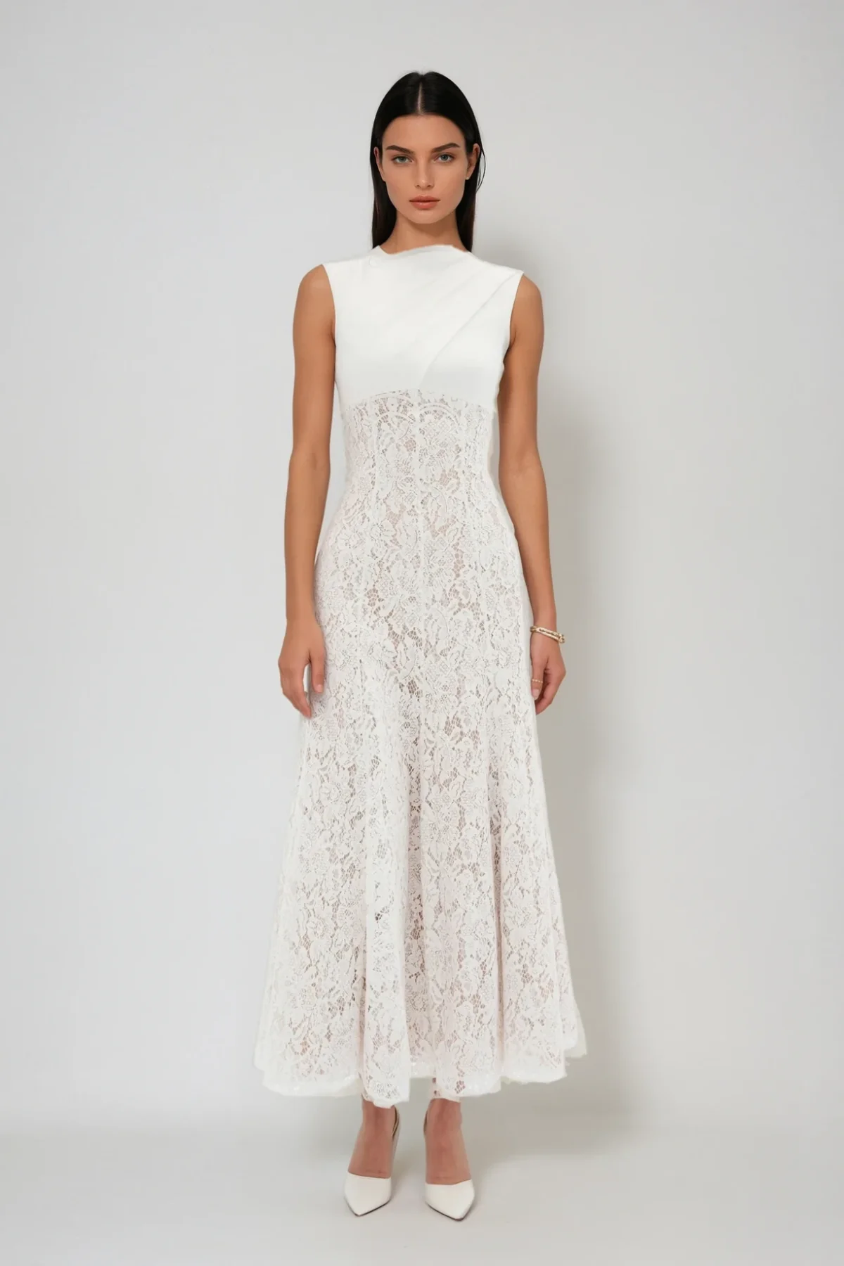 Elevate your wardrobe with the White Lace Sleeveless Maxi Dress, a stunning piece adorned with intricate lace details and a flattering sleeveless design. Ideal for special occasions, this dress exudes elegance while ensuring you look and feel your best. Crafted from superior materials, it combines comfort with style effortlessly. With a non-stretch fabric that maintains its form, this dress can be gently machine washed. Please note, the color may slightly vary due to lighting discrepancies in images. Rest assured, the product images displayed (without models) best reflect the true color of the dress.