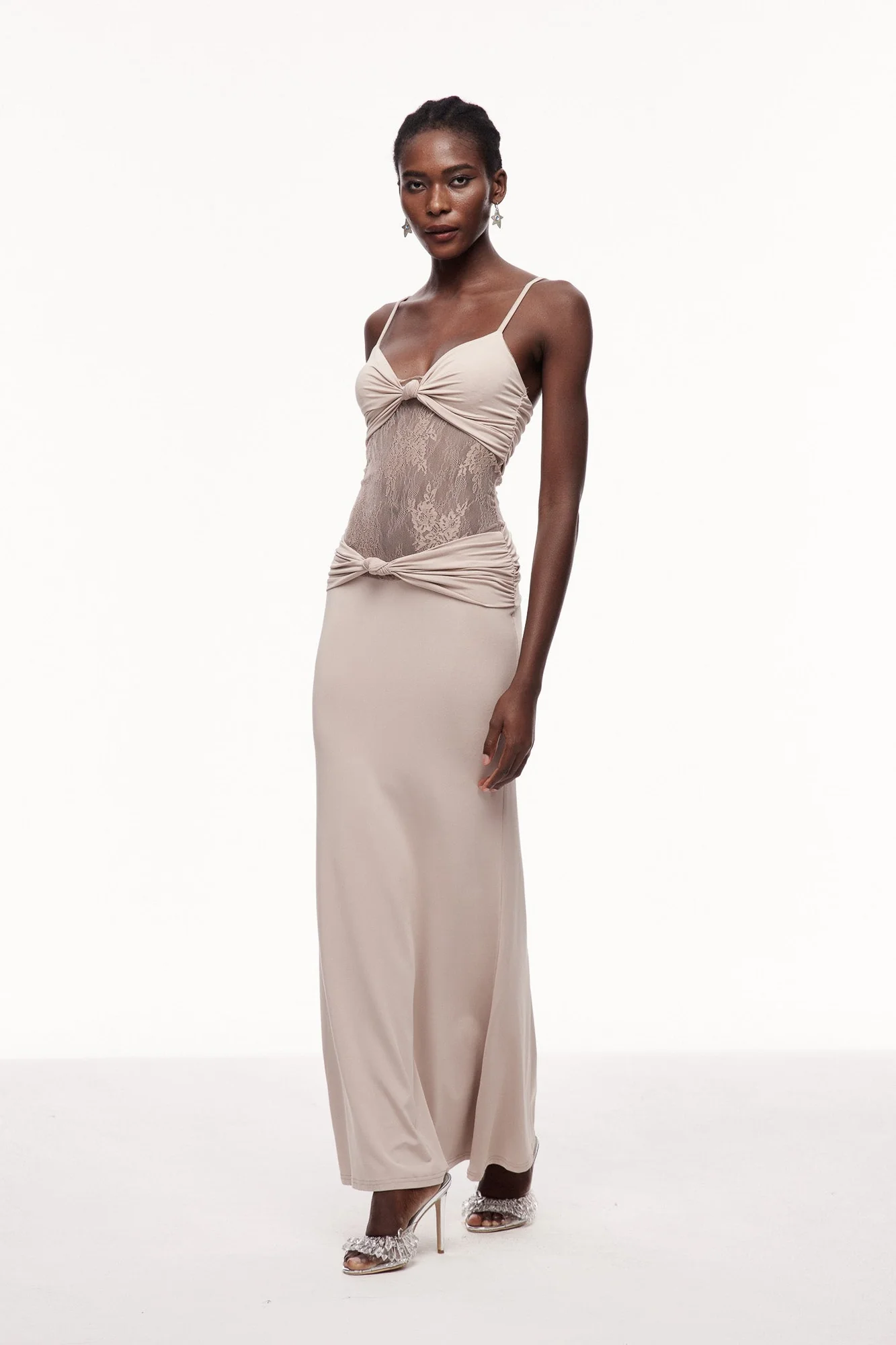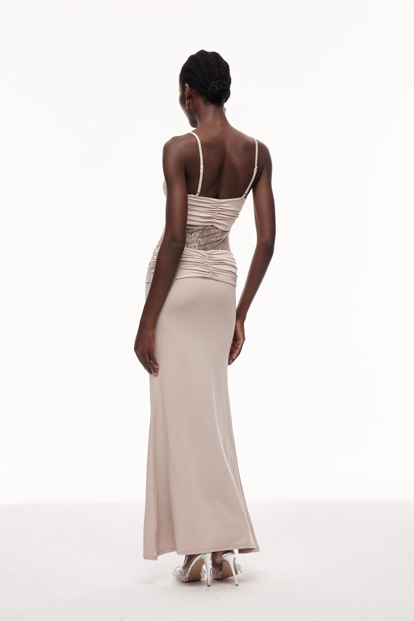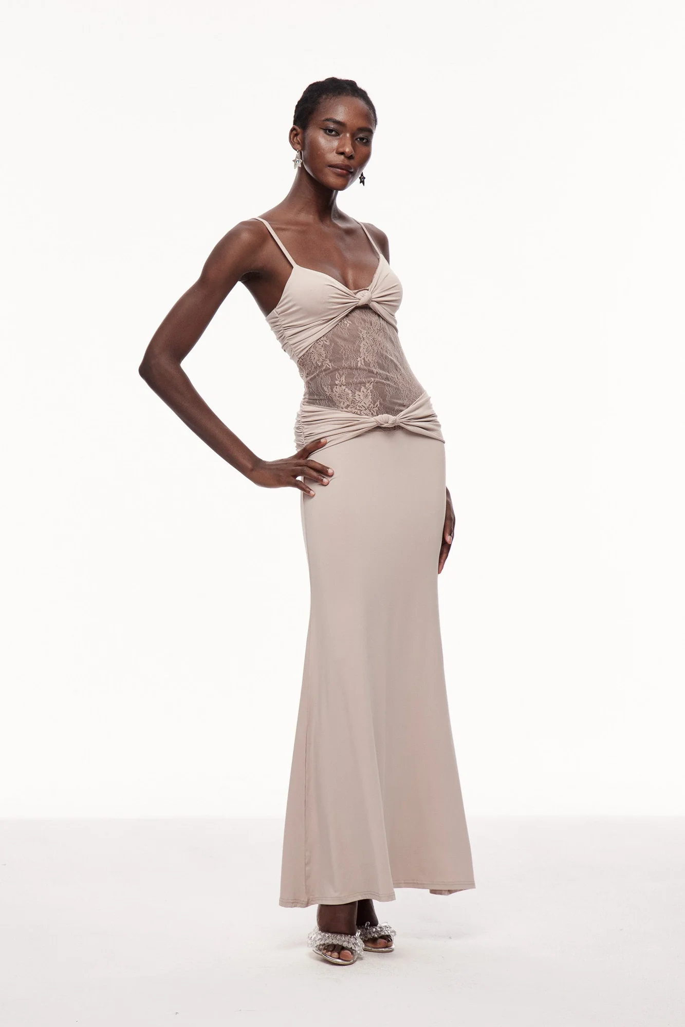 Elevate your wardrobe with the White Lace Spaghetti Maxi Dress, expertly crafted for a refined silhouette. This elegant dress features delicate lace detailing, slender spaghetti straps, and a slight stretch for comfort. Perfect for formal occasions or stylish evening wear, the flowing design enhances movement while the intricate lace adds sophisticated texture. Gentle machine wash. Please note: color may vary due to image lighting. Add this romantic coquette to your collection today!