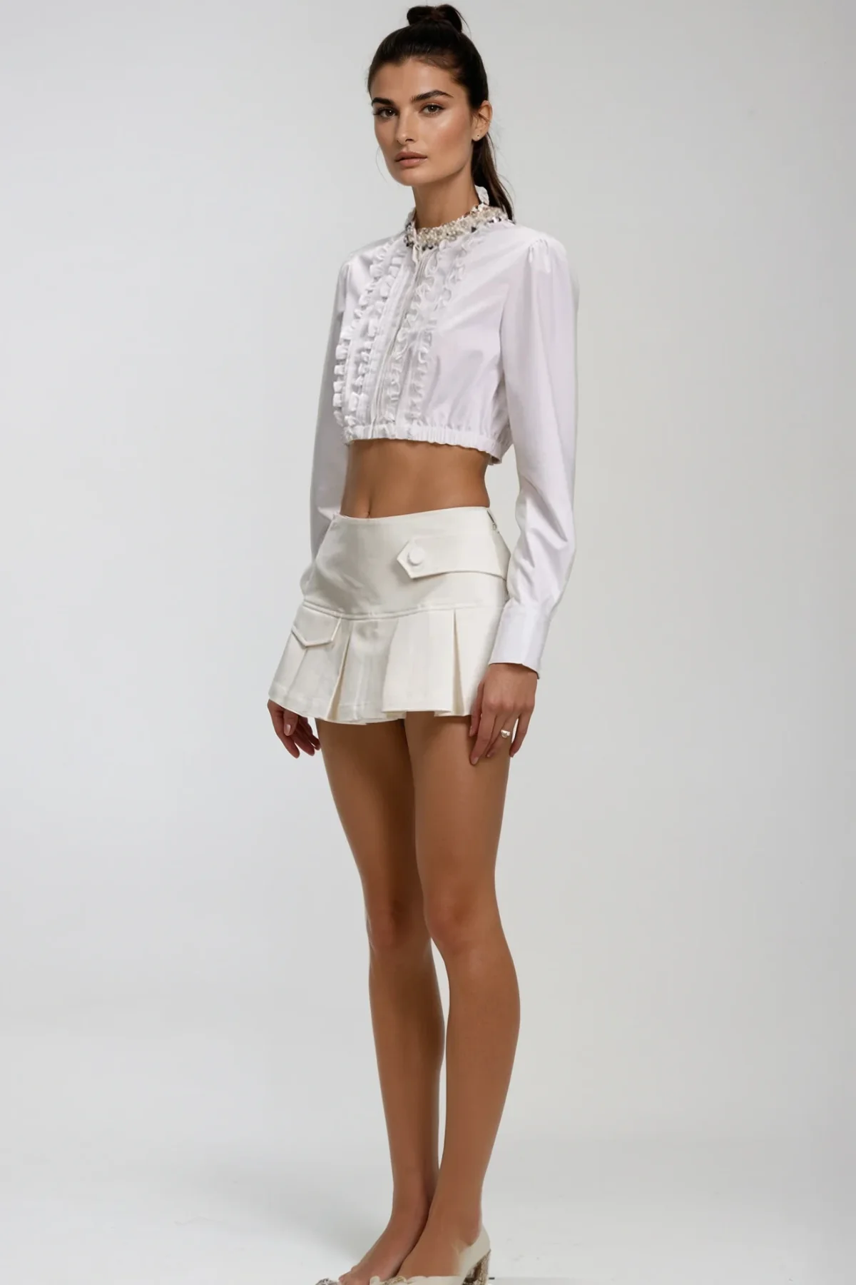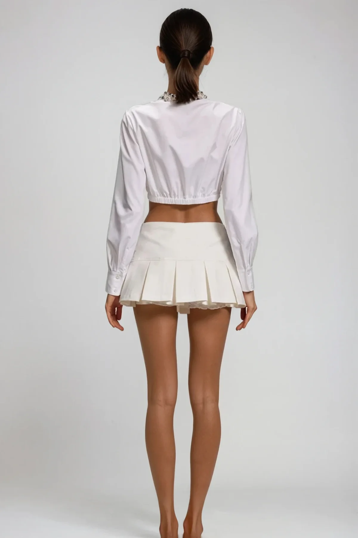 Upgrade your wardrobe with the White Long Sleeve Crop Skirt Set . This versatile set combines a fitted long sleeve crop top with a coordinating skirt, creating a sleek silhouette suitable for various occasions. Crafted for comfort and structure, this set allows you to layer confidently or wear as standalone pieces. With a modern yet polished aesthetic, this set is a must-have. Experience the blend of modern style and refined tailoring today!
