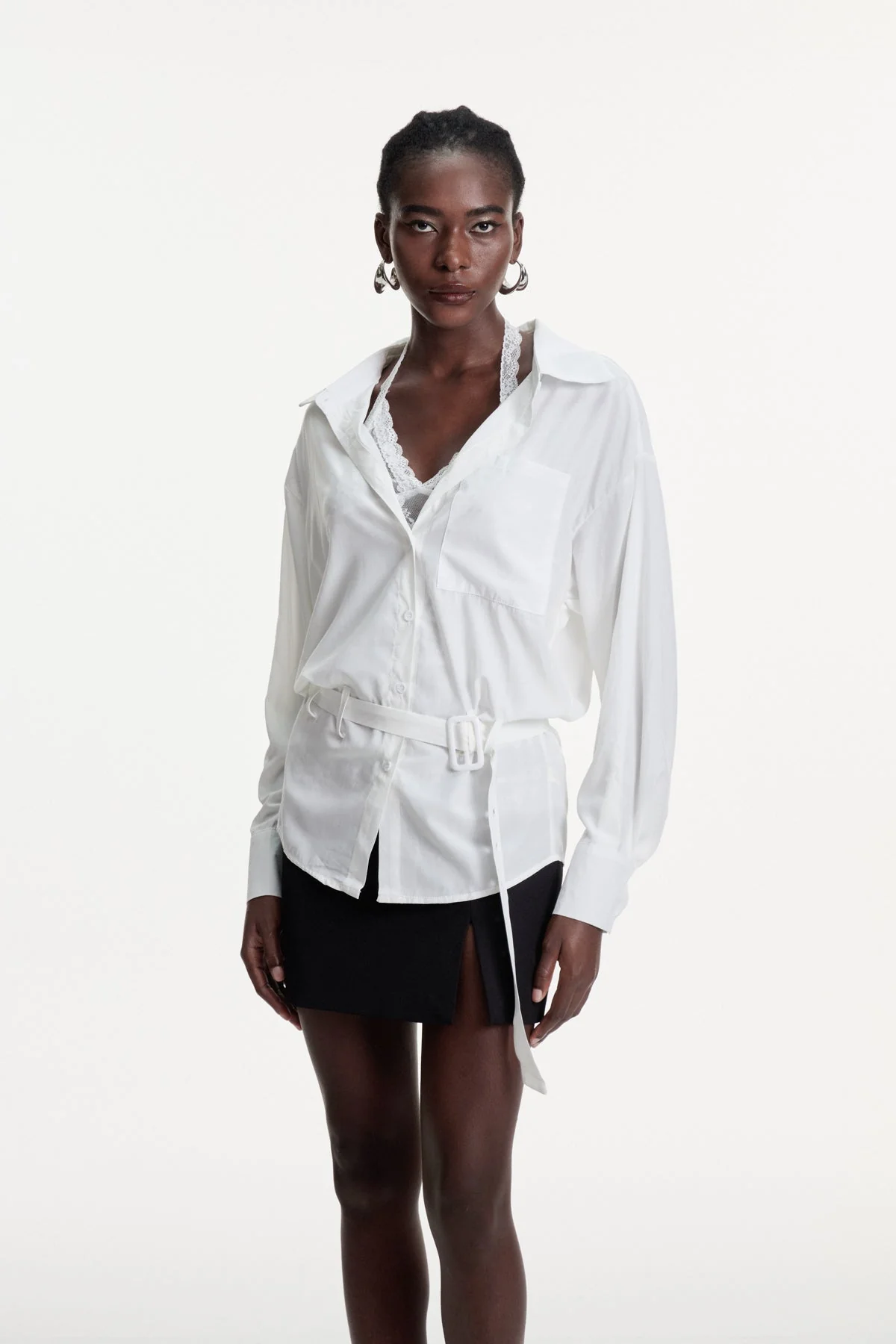 The White Long Sleeve Shirt blends elegance with durability, suitable for various occasions. Expertly tailored with premium fabric for enduring comfort and shape retention. Versatile long sleeves for year-round wear, crafted with meticulous attention to detail for long-lasting quality. Elevate your wardrobe with this essential piece that embodies style and durability. Stretch Factor: Non-Stretch. Care Instructions: Gentle machine wash. Please note, colors may vary slightly due to lighting in images.