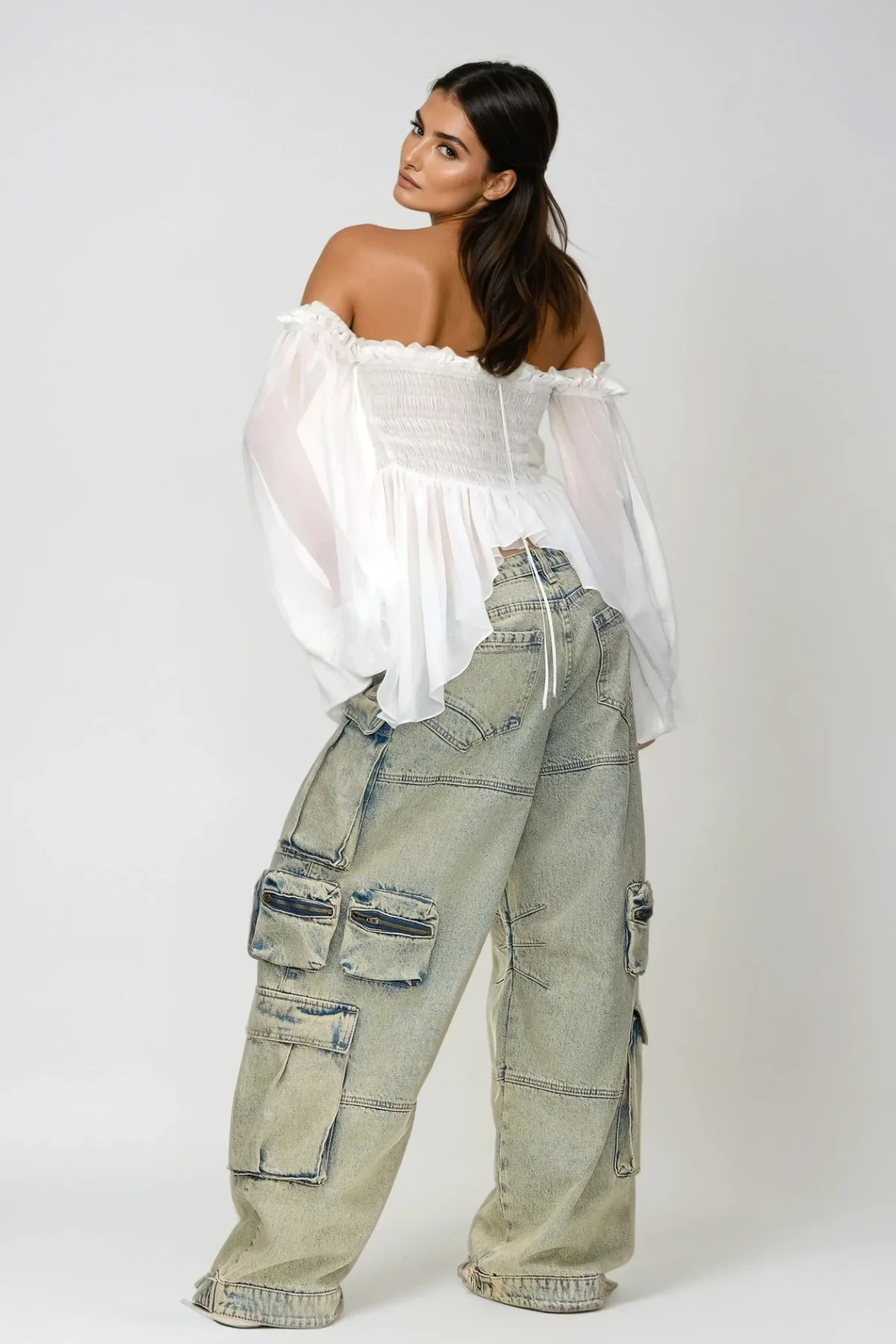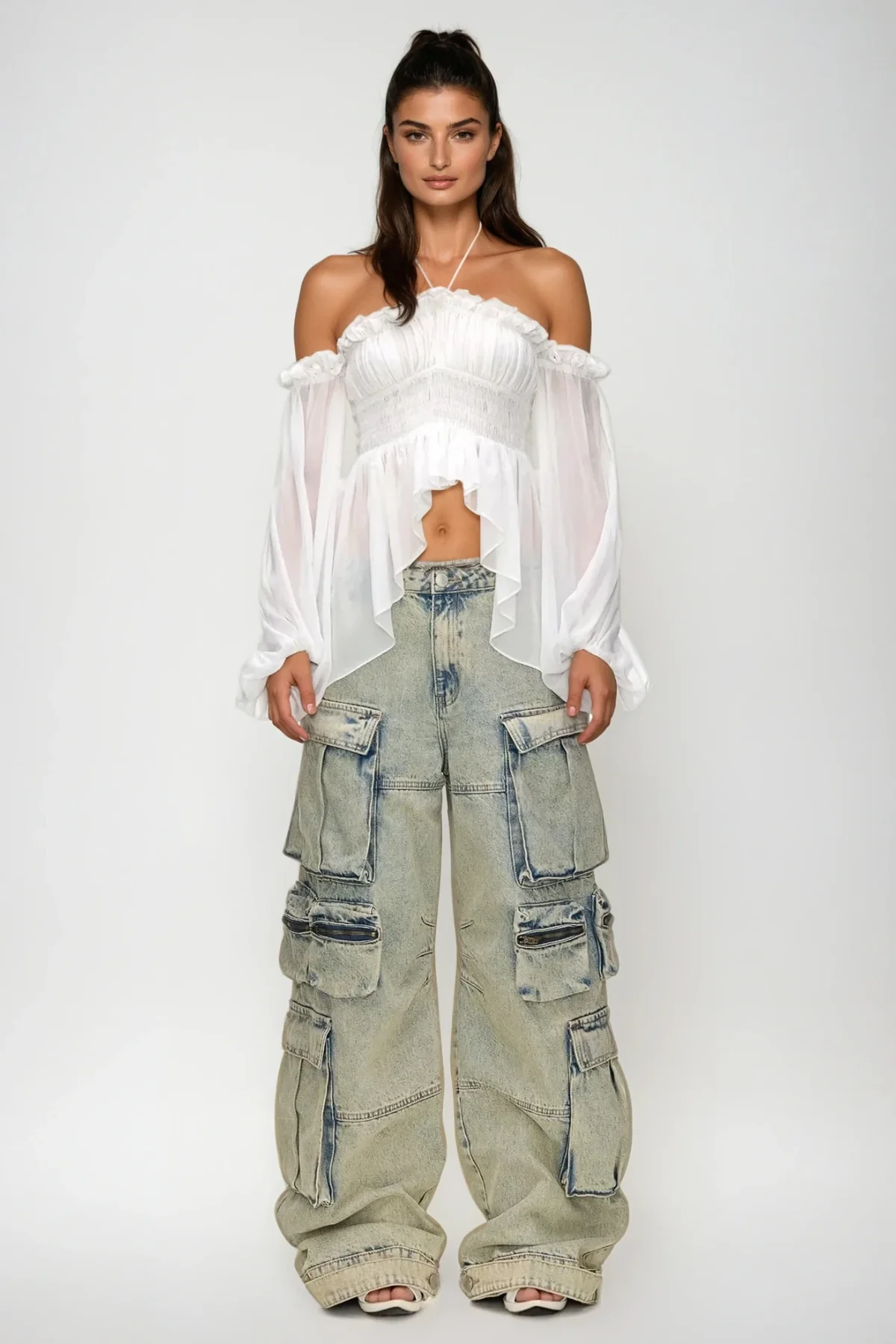 Elevate your wardrobe with this stunning White Mesh Ruched Asymmetric Ruffle Top. Crafted from a blend of 50% Polyester and 50% Cotton, the unique mesh fabric exudes elegance, while the asymmetrical ruffles add a trendy twist. The flattering ruched detail accentuates your waistline for a slimming effect, making it perfect for achieving a sophisticated and stylish look. This top requires gentle machine wash and may vary slightly in color due to lighting. Embrace sophistication with this chic piece!