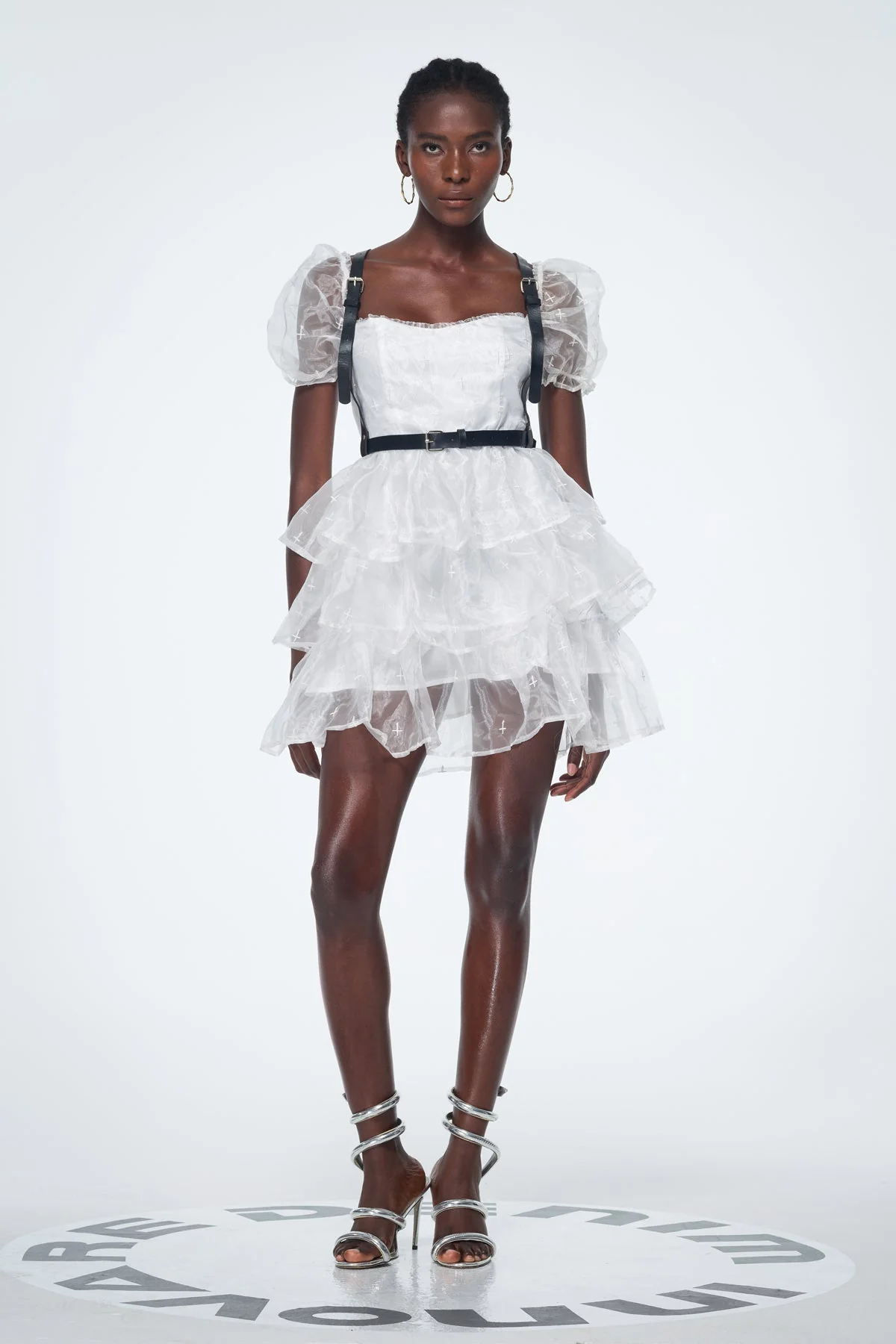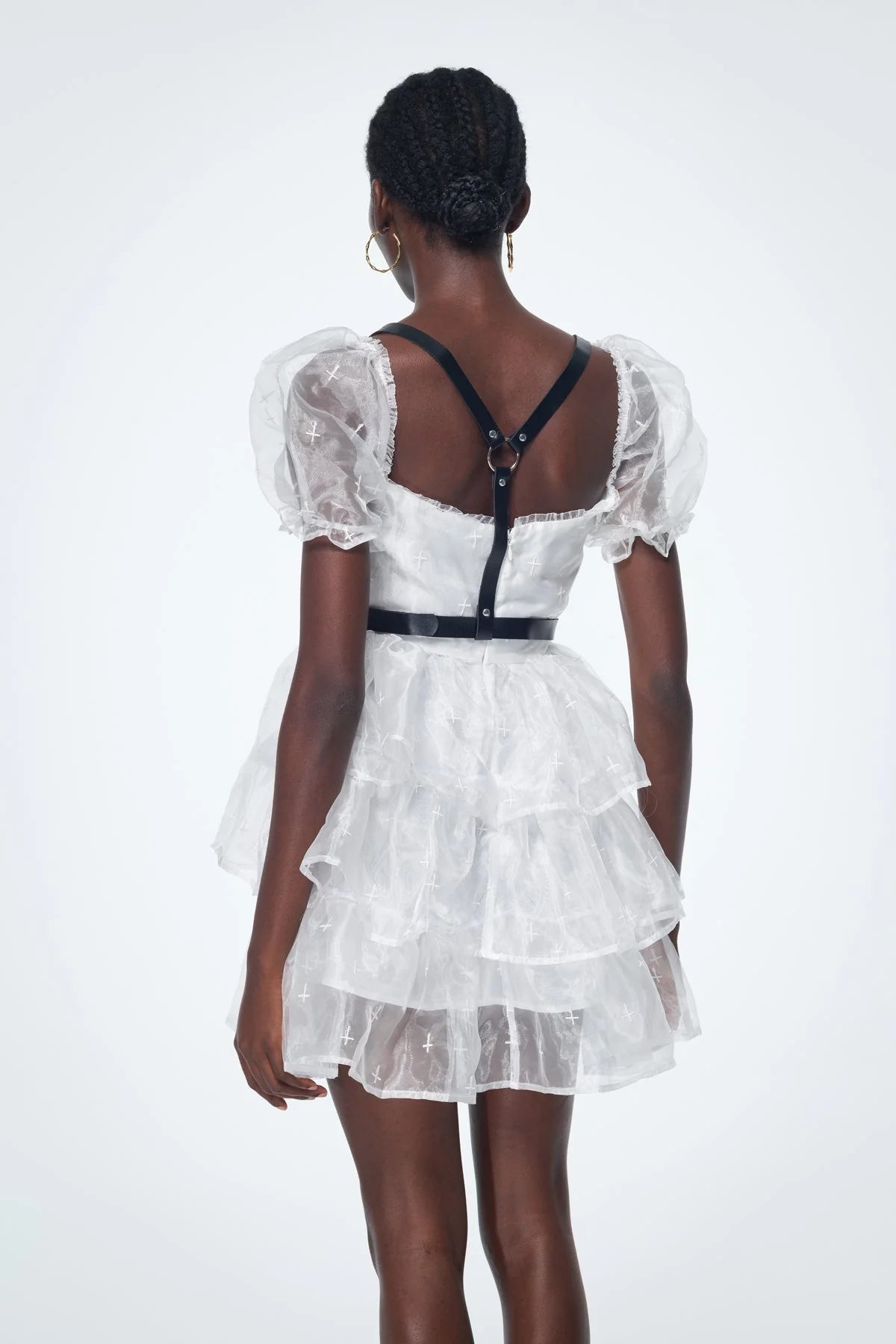 This White Mesh Ruffle Mini Dress is a stylish wardrobe staple. Crafted from high-quality mesh with delicate ruffle detailing, this dress exudes femininity. The lightweight and breathable fabric ensure all-day comfort, making it ideal for any occasion. Material: 50% Polyester, 50% Cotton Stretch Factor: Non-Stretch Cleaning: Gentle machine wash recommended. Please note that color may vary due to lighting. *Suspender not included, sold separately.