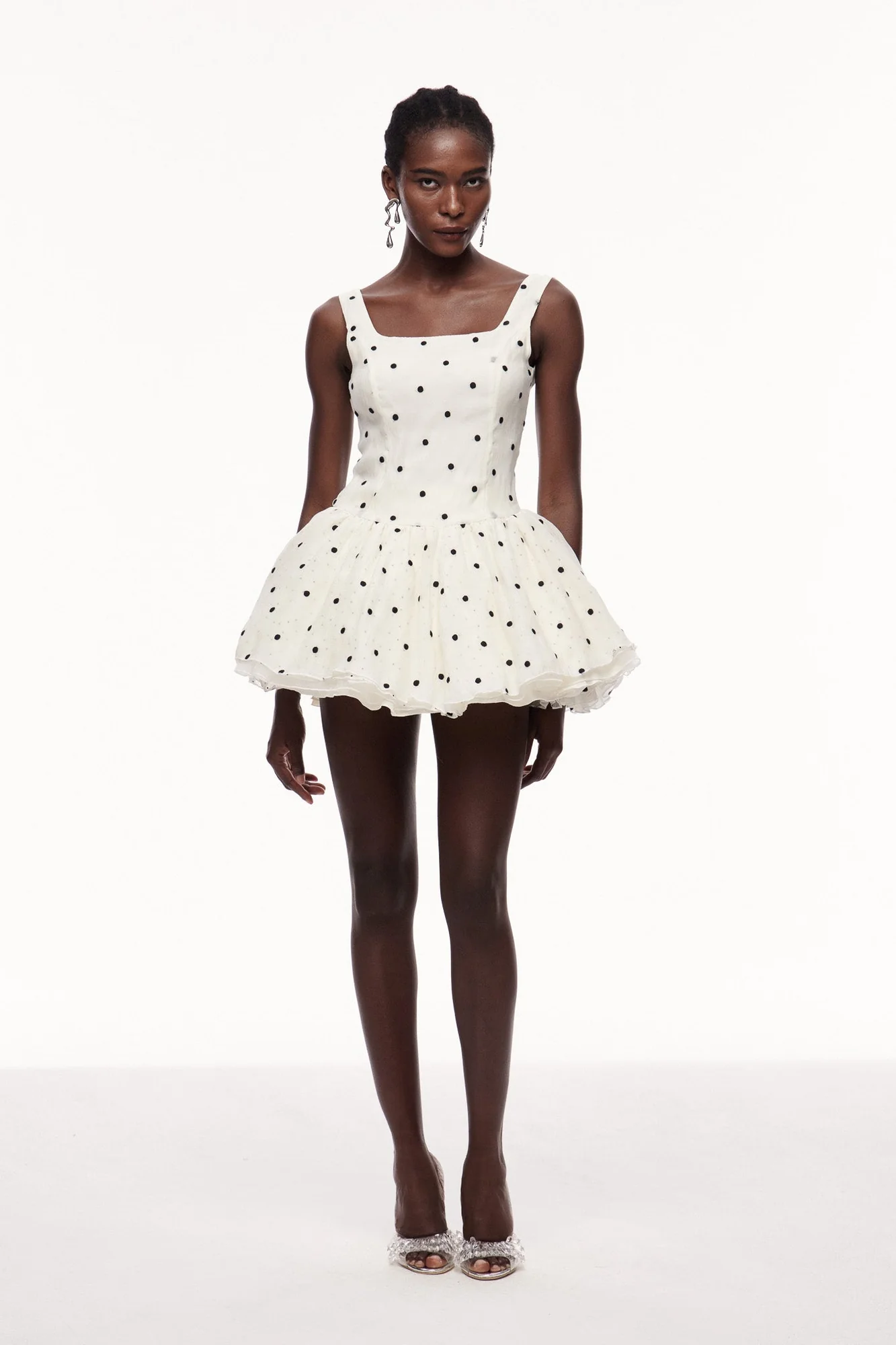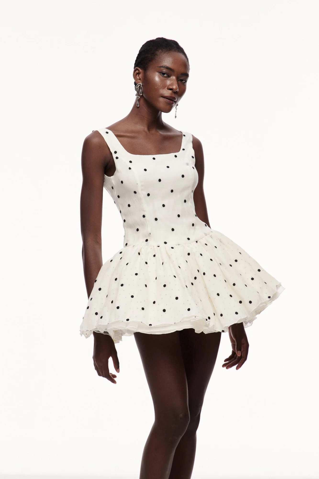 Indulge in timeless polka dot charm with a touch of modern flair wearing our White Polka Dot Puffy Mini Dress. The voluminous puff sleeves exude sophistication, while the mini length accentuates your legs for a flattering, confident appeal. Designed for both style and comfort, this dress is a perfect choice for occasions where you seek a refined yet playful look. Enjoy the non-stretch fabric that ensures easy care with a gentle machine wash. Please note that color may vary due to lighting conditions in images.