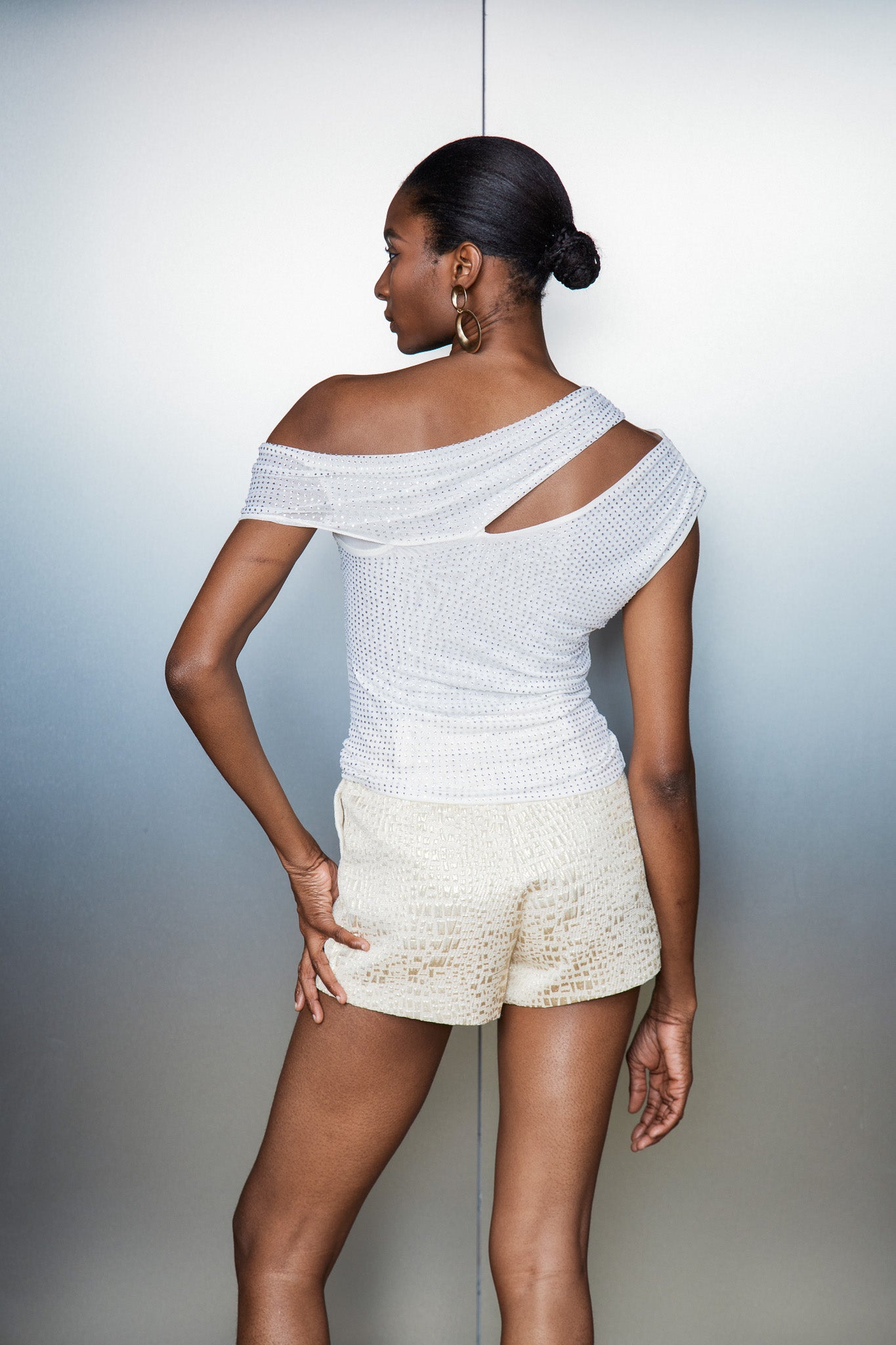 Elevate your style with the White Rhinestone Asymmetric Pants Set. This chic ensemble features a unique asymmetric design with sparkling rhinestone accents, blending edgy cutouts with refined embellishments for a bold yet elegant look. Expertly tailored for comfort and a confident silhouette, this set ensures you stand out at any event. Indulge in the balance of daring and sophistication thats sure to leave a lasting impression. The non-stretch fabric requires gentle machine wash. Please note, color may vary due to lighting conditions in images.
