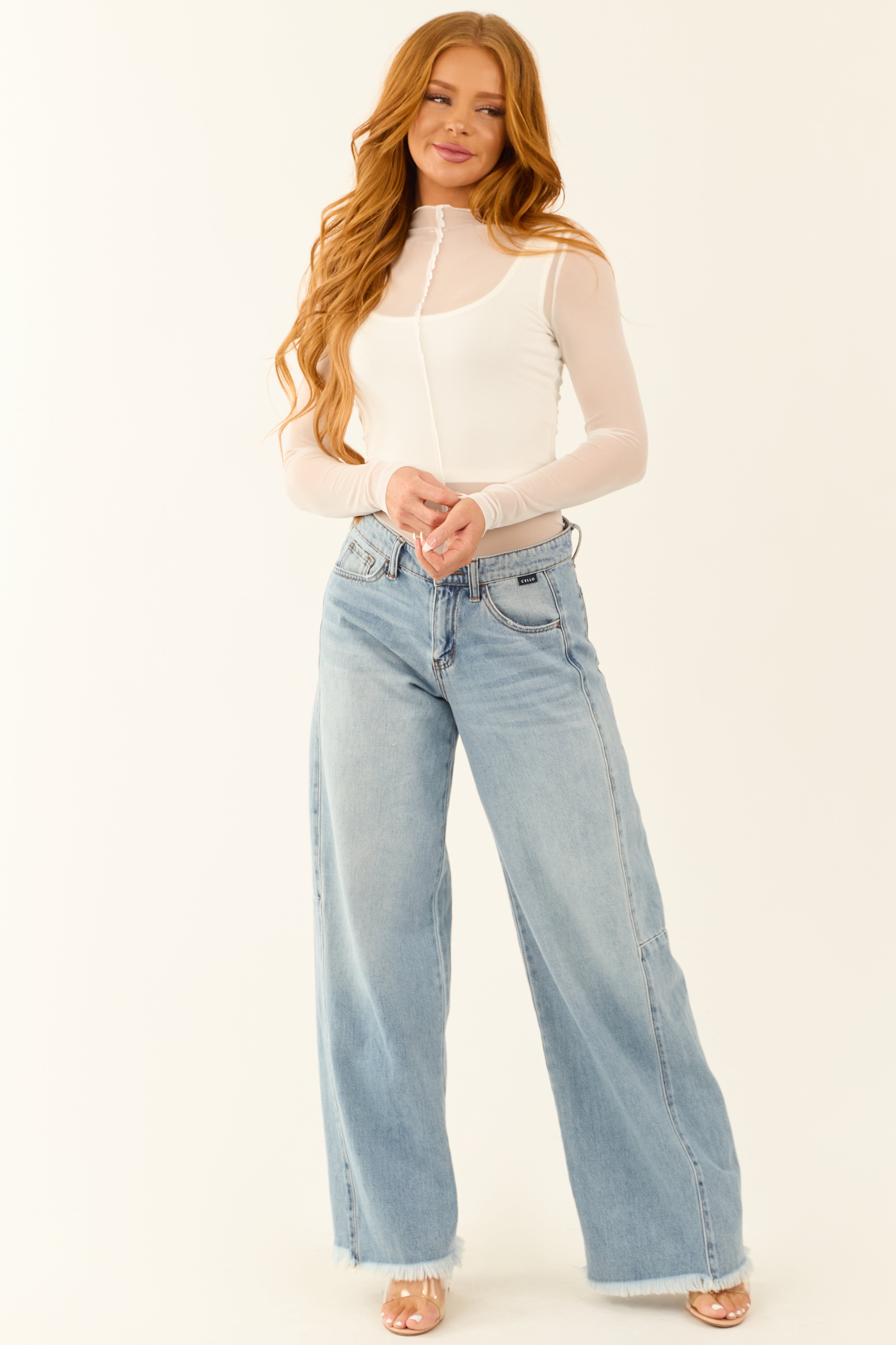White Ribbed Crop Top with Sheer Long Sleeves