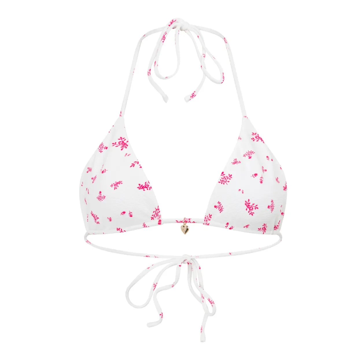 Indulge in elegance and comfort with our White Ribbed Halter Bikini from the Capri Collection. Crafted from silky-smooth recycled materials, this bikini boasts a sleek design with delicate mini magenta florals. The adjustable straps and seamless finish offer a perfect fit for lounging under the sun or taking a dip in the pool. Enjoy the environmentally friendly convenience of this double-lined, no-padding style. Explore endless style possibilities with Mermaid Ways Instagram @mermaid_way. Experience a blend of luxury and sustainability with our ethically made swimwear