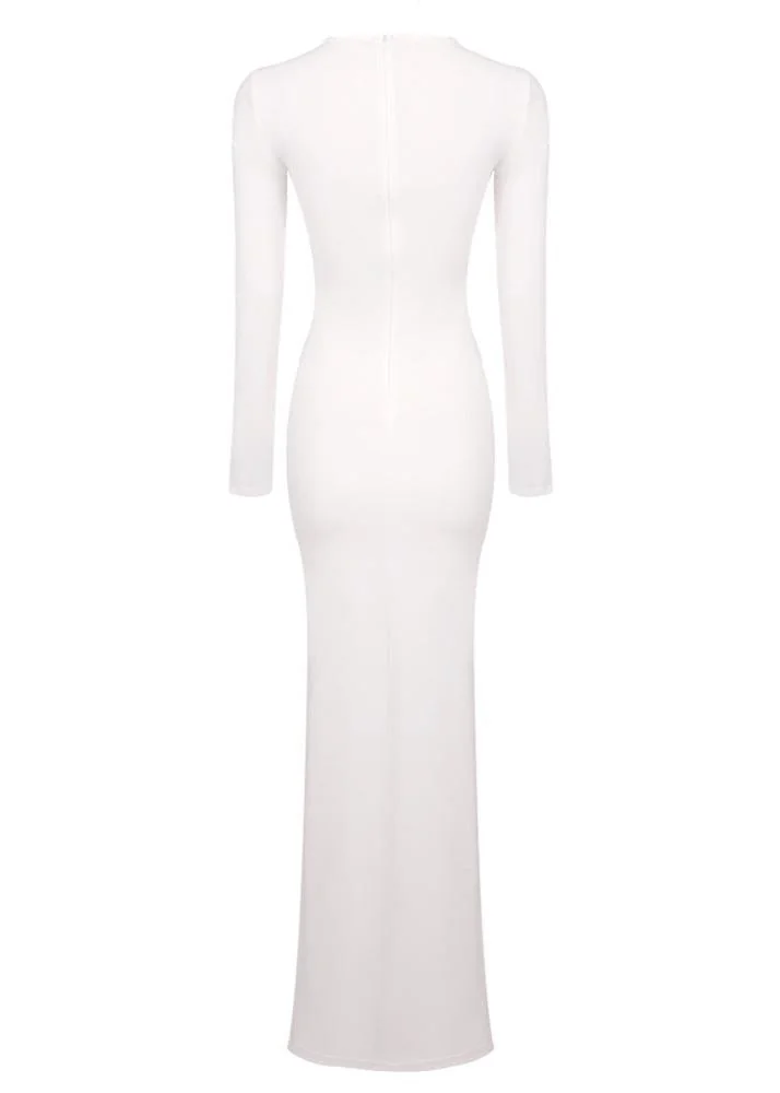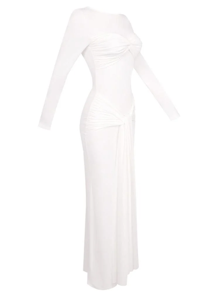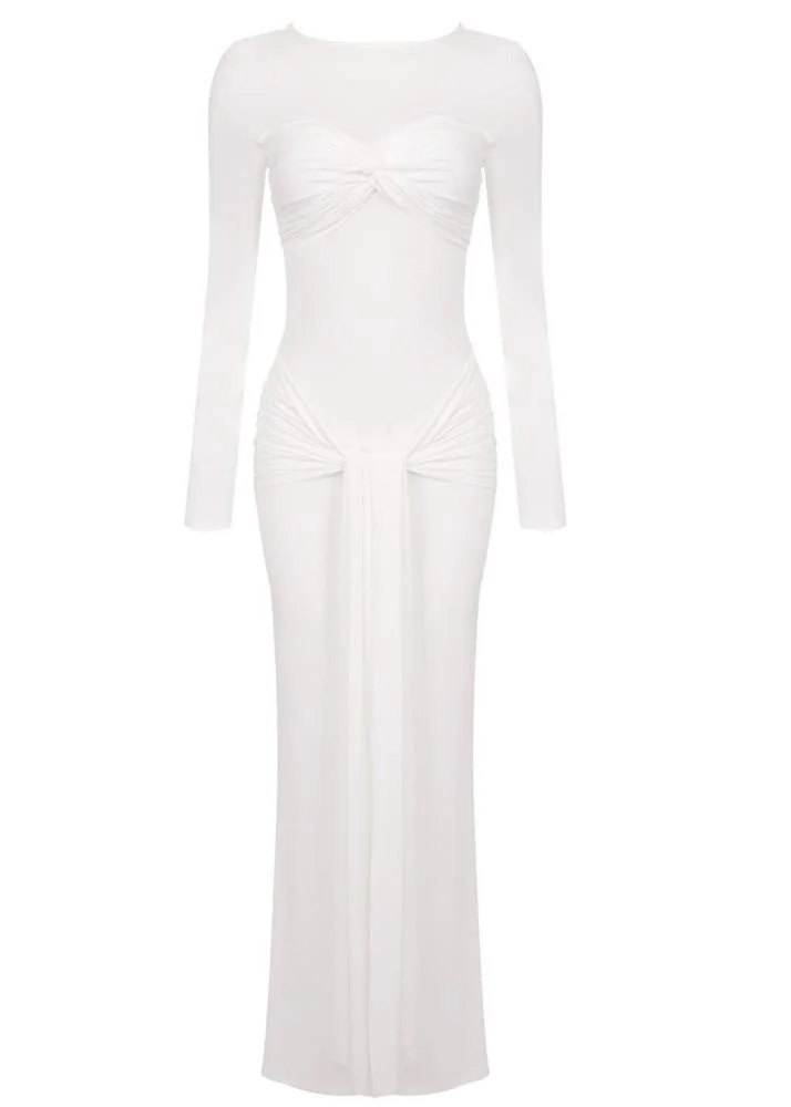 This elegant white maxi dress features a charming ribbon knot detail on the round neck, adding a playful touch to the classic silhouette. Designed for versatility, it ensures effortless chicness and comfort throughout the day. Made of 100% polyester and recommended for dry cleaning, this dress is a perfect choice for any occasion. The fabric quality guarantees durability and comfort. Please refer to our size chart for the most accurate fit suggestions, as the item runs true to size.