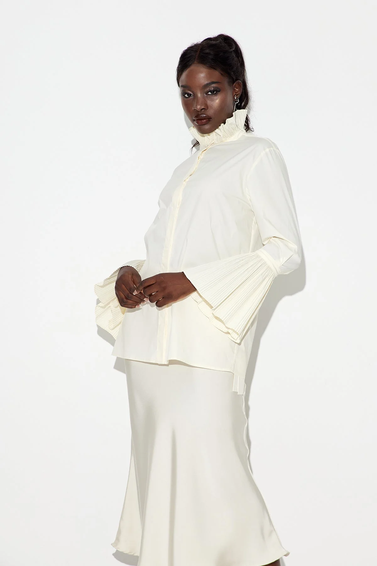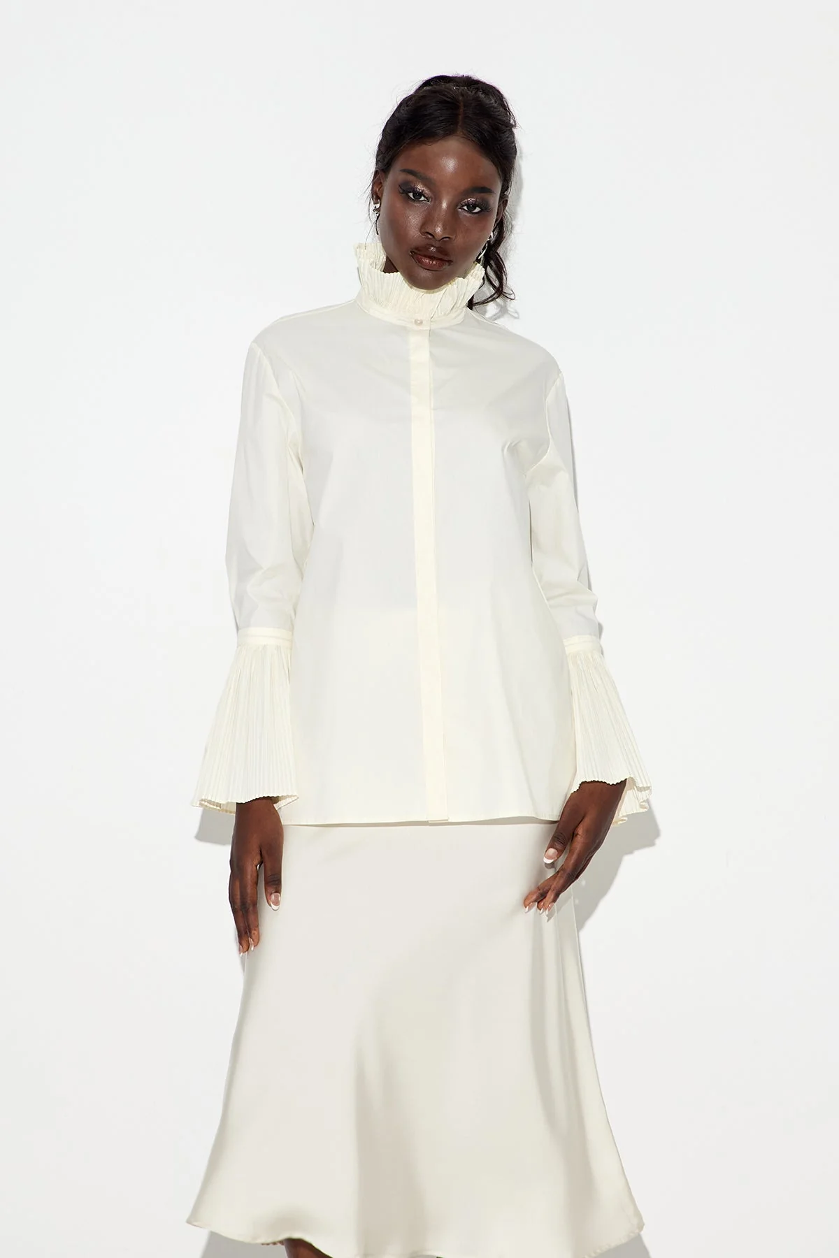 The White Ruched Shirt with Premium Tailoring is a chic essential for those seeking a versatile wardrobe staple. Crafted from high-quality fabric, this shirt blends refined tailoring with a structured fit for a polished appearance. Ideal for professional or casual settings, it offers all-day comfort and durability. Elevate your style with this Rebel Office shirt that exudes expert craftsmanship and sharp silhouette. Gentle machine wash recommended to maintain its pristine look. Please note that color may vary due to lighting on images. Perfect for men and women who appreciate quality attire.
