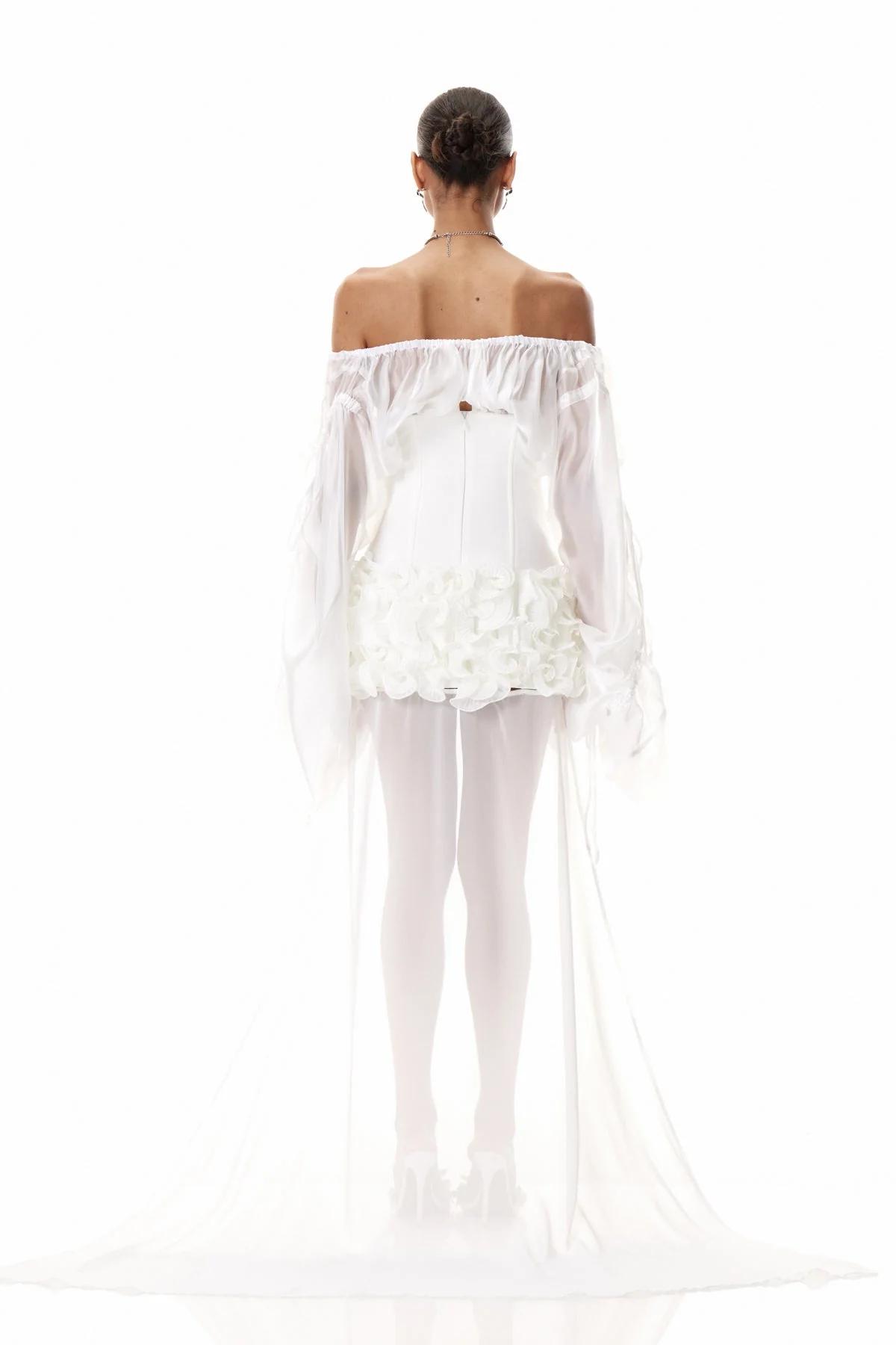 Indulge in the charm of the White Ruffle Off Shoulder Corset Mini Dress. This exquisite dress features a corset-style bodice for a flattering shape, off-shoulder design for a touch of sophistication, and playful ruffle accents on the mini-length skirt. Perfect for formal or semi-formal occasions, this dress offers style and comfort with a modern finish. Elevate your wardrobe with this expertly crafted piece that combines elegant structure with delicate details. Non-Stretch fabric. Care: Gentle machine wash. Color may slightly vary in different lighting conditions.