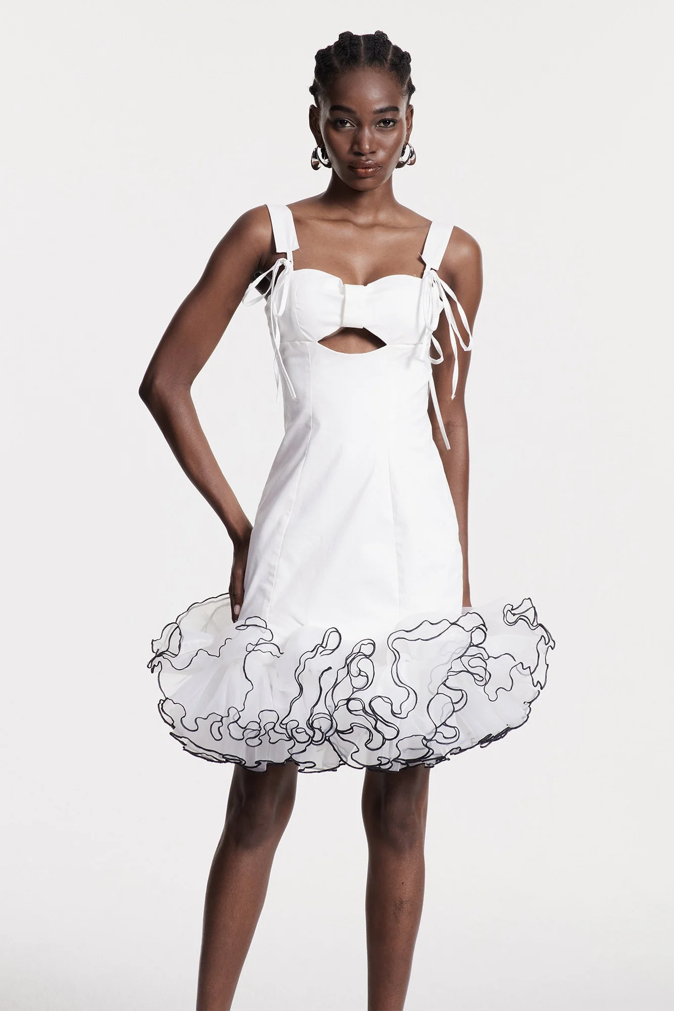 Elevate your style with the White Ruffle Sleeveless Mini Dress . Crafted for versatility and comfort, this chic piece boasts a refined silhouette, sleeveless design, and subtle ruffle accents. Whether for casual gatherings or special occasions, this non-stretch dress ensures a flattering fit while exuding charm. Gentle machine wash recommended for easy care. Color variations may occur due to lighting in images.