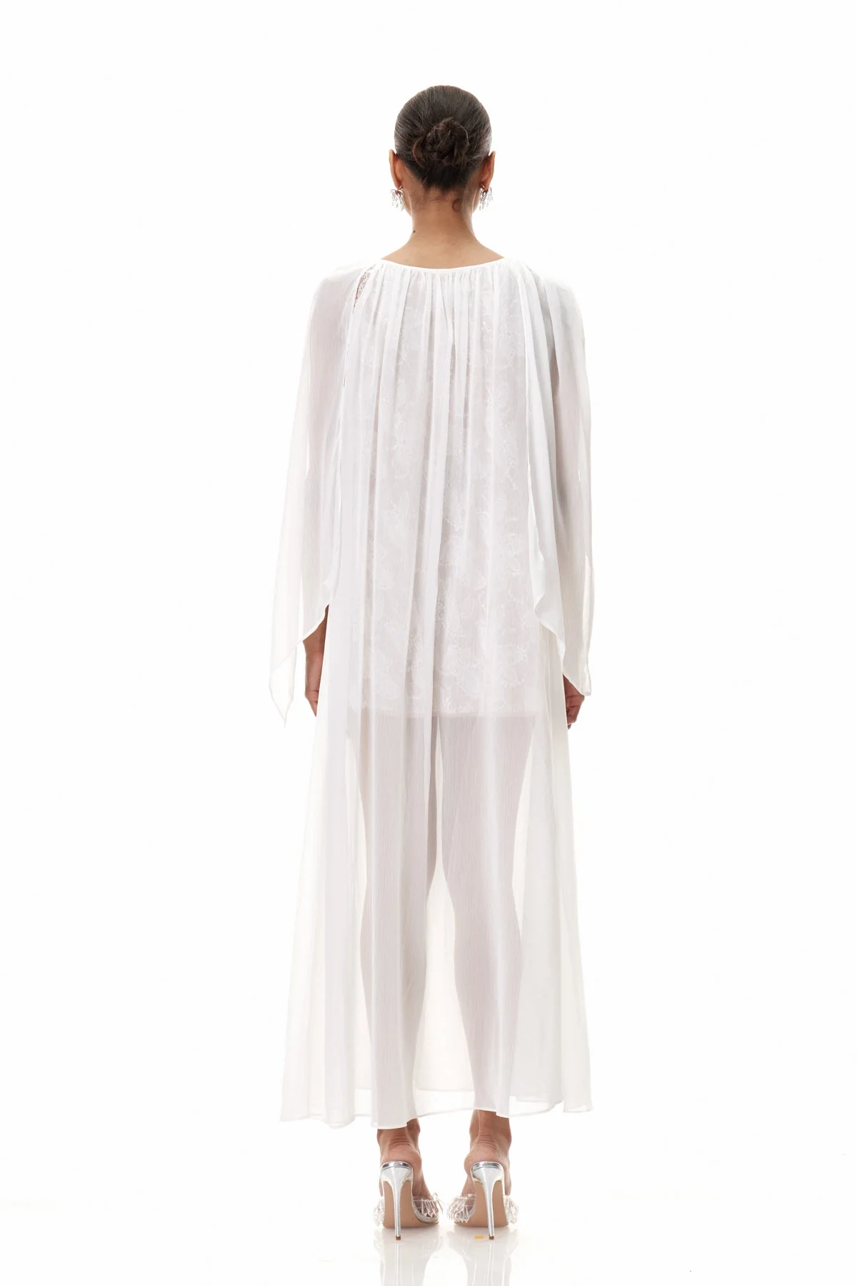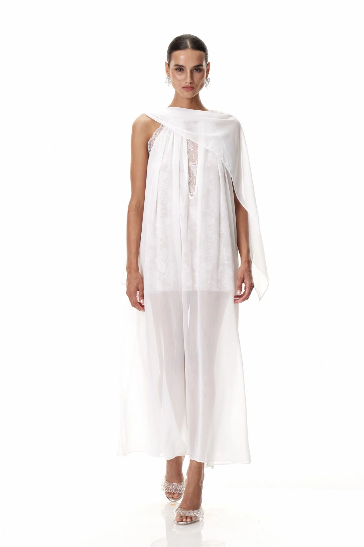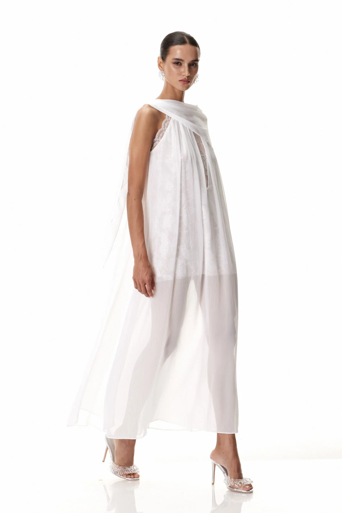 Elevate your evening wardrobe with the White Sequin Shawl Maxi Dress. Expertly crafted with shimmering sequins, this floor-length dress offers a graceful silhouette enhanced by a sophisticated shawl neckline. Perfect for formal occasions, its elegant design ensures you stand out with effortless glamour. The luxurious fabric and meticulous detailing provide both comfort and style, making it a timeless choice for your special events. This chic essential is suitable for various sizes with slight stretch factor for a gentle machine wash. Celebrate in style with this dazzling dress that catches the light with every step you take. Color may vary due to lighting in images.