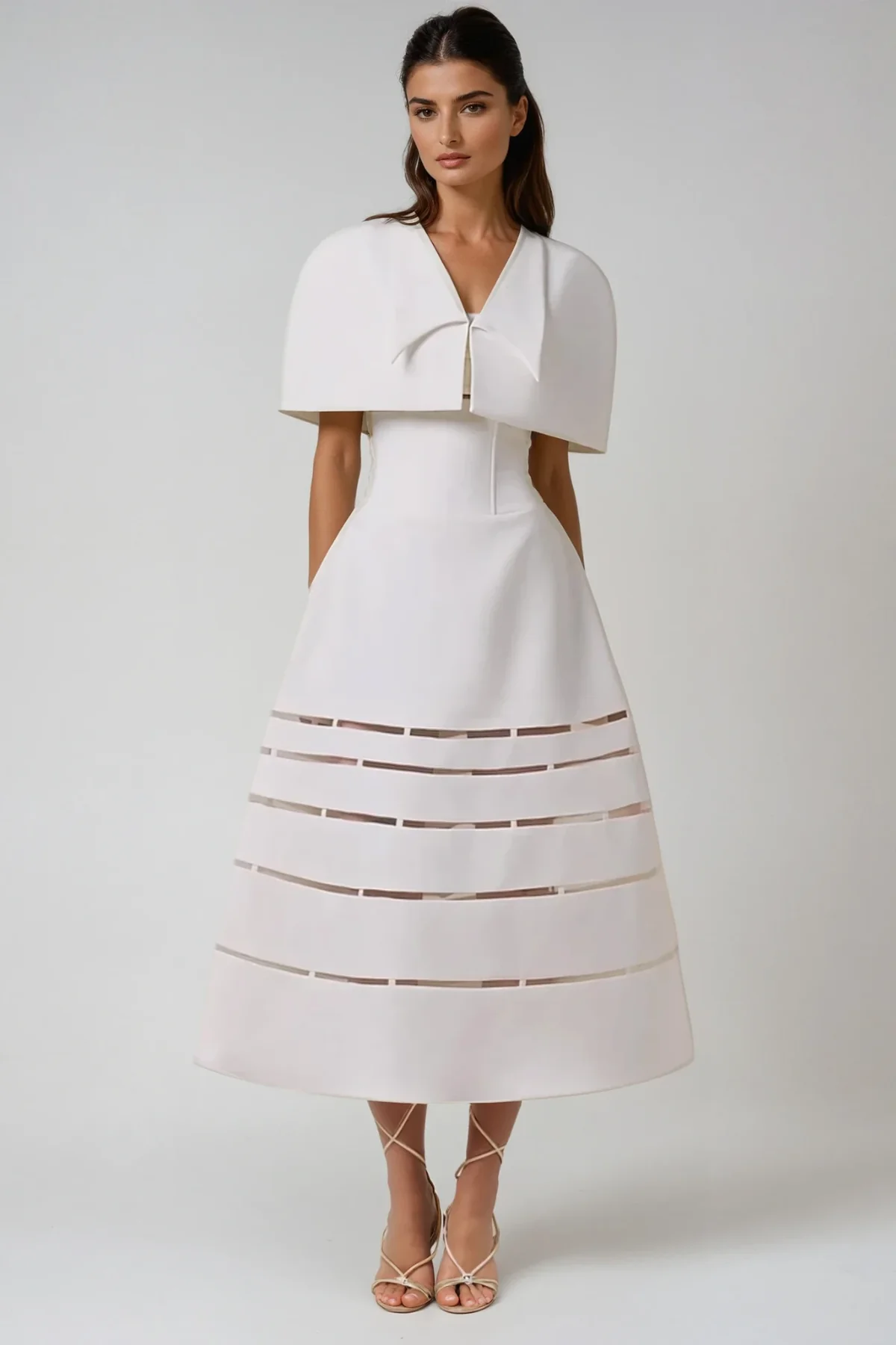 The White Shawl Cutout Maxi Dress exudes elegance with its draped design and contemporary cutouts, creating a sophisticated silhouette. This formal attire, suitable for various occasions, complements your figure with its flowing maxi length and shawl-inspired neckline. Combining style and comfort, this dress is a timeless yet modern choice for evening events. The non-stretch fabric is easy to care for with a gentle machine wash. Please note that the color may vary due to lighting conditions in images. Elevate your wardrobe with this chic essential. Explore our size range: S, M, L, XL.