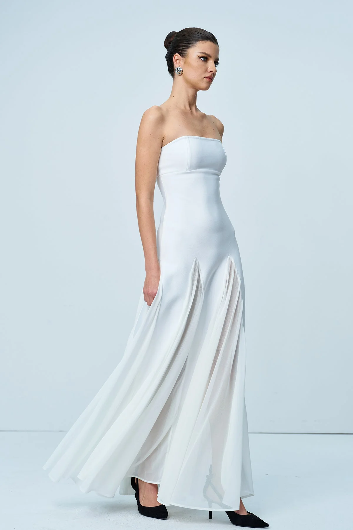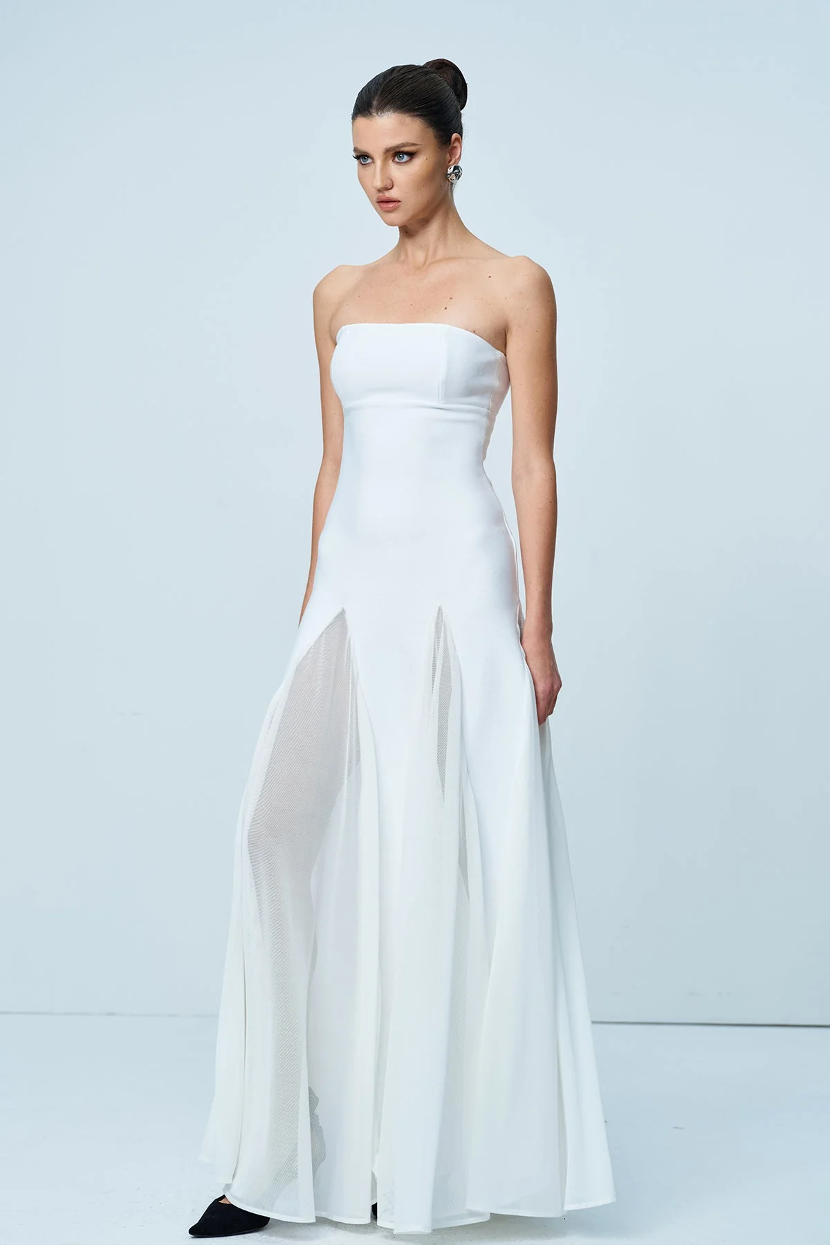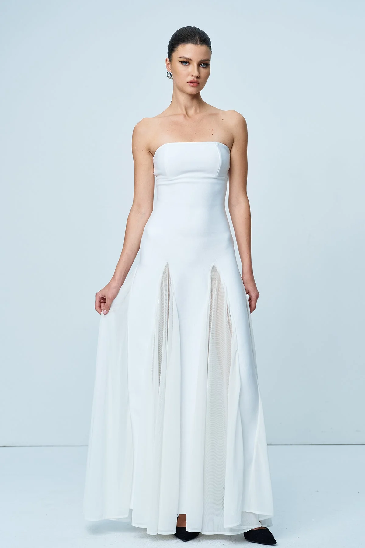 This stunning white strapless maxi dress combines style and comfort effortlessly. The deconstructed design adds a unique flair, while the strapless feature ensures easy movement and versatility. Crafted with a premium blend of 50% Polyester and 50% Cotton, this dress guarantees attention at any event. Experience a non-stretch fabric with easy care – gentle machine wash. Please note that color variations may occur due to lighting during photography. Elevate your wardrobe with this chic essential. Channel your inner fashionista effortlessly with this exquisite piece.