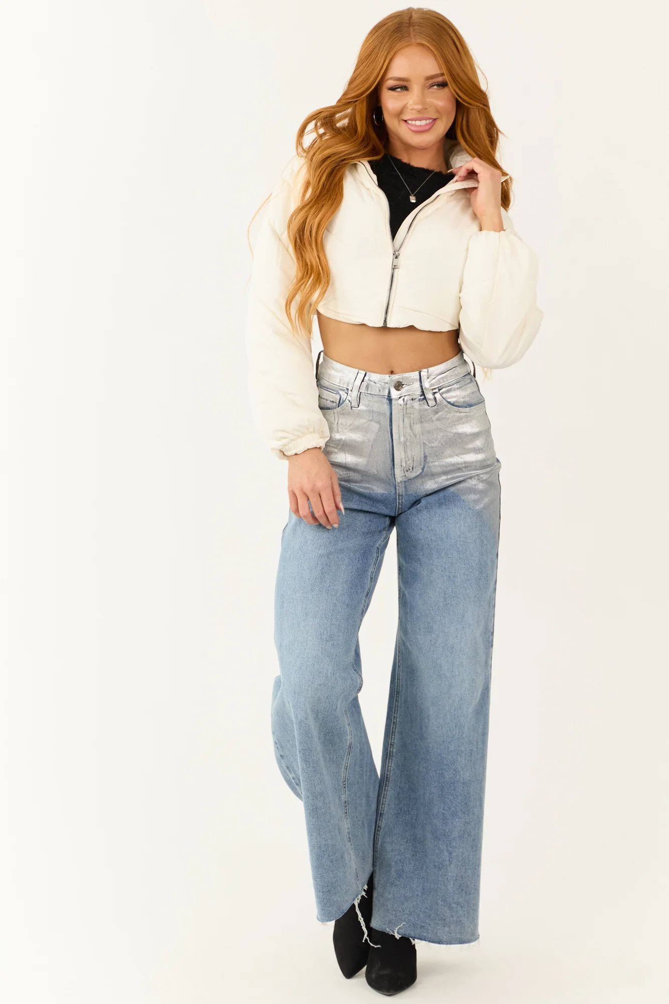 Stay cozy this winter in our White Super Cropped Zip Up Puffer Jacket. Made of non-stretchy woven fabric with elastic cuffs and hemline, this jacket features a stylish mock neckline, long sleeves, and a high low hem for added flair. The jacket is lined for extra warmth and comfort. Care instructions: Hand wash in cold water, do not bleach, iron, tumble dry, or dry clean. Available in sizes Small, Medium, and Large.