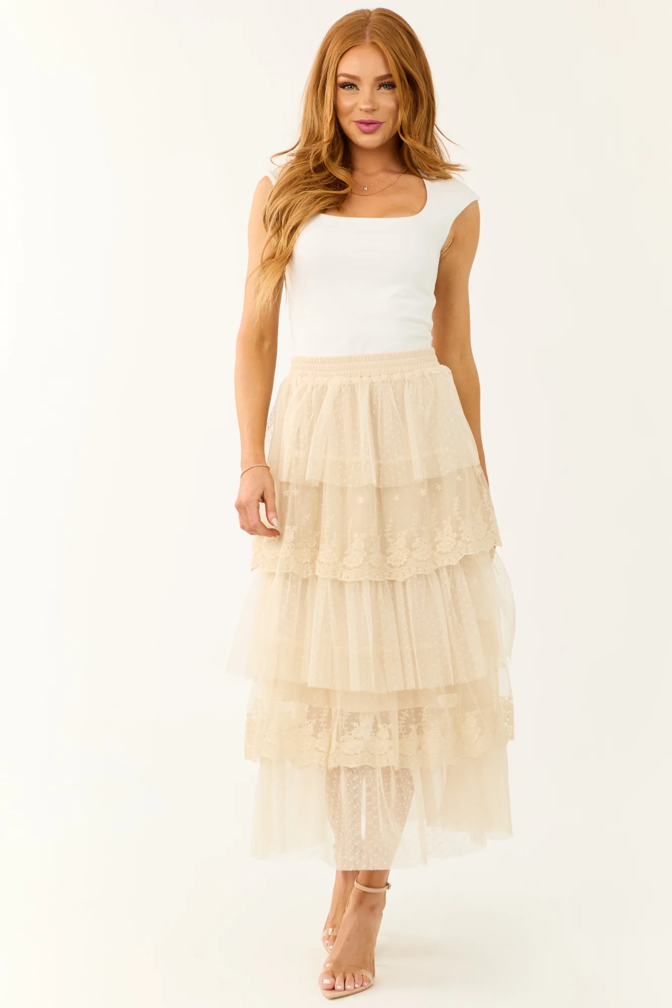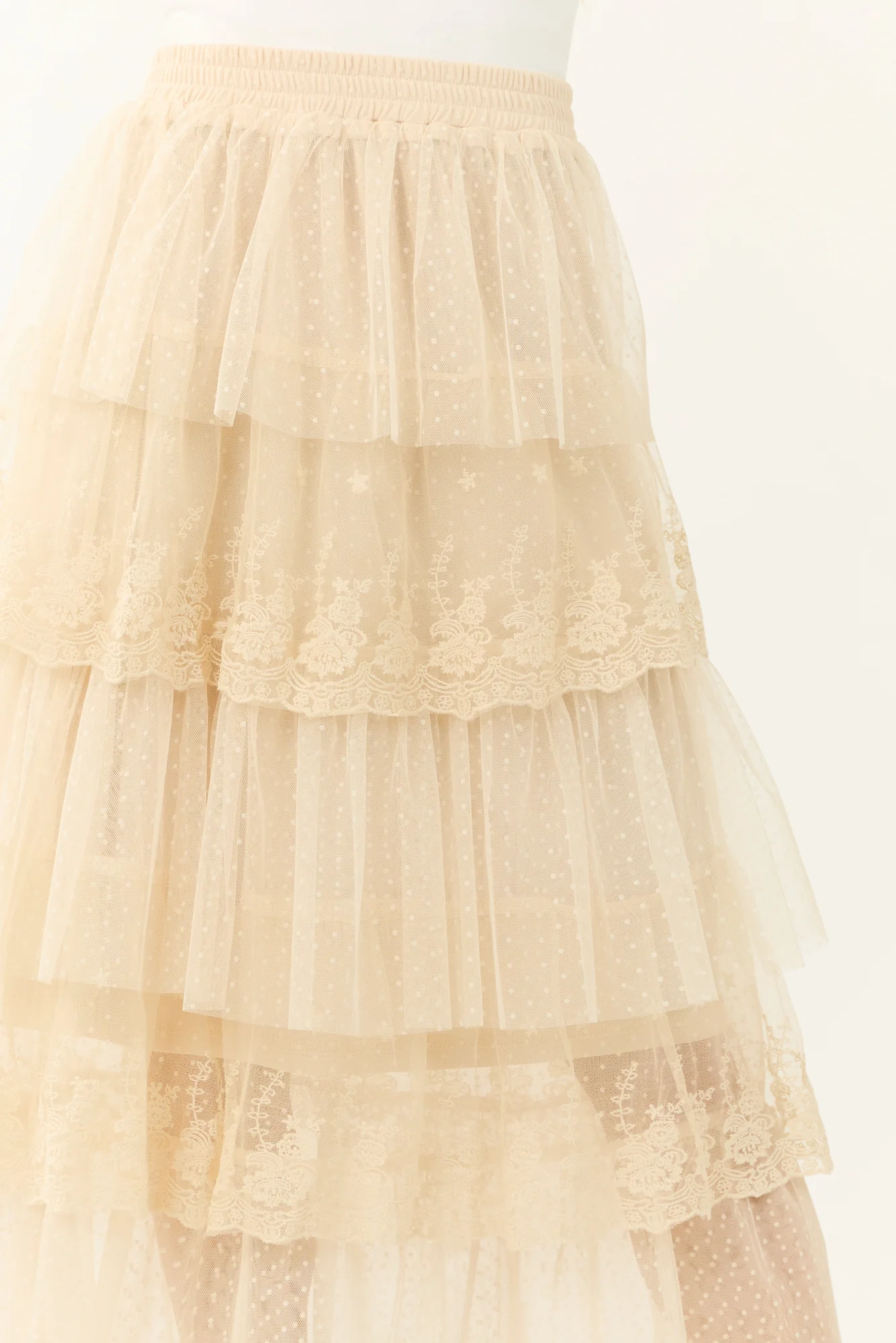Indulge in the ethereal charm of our White Swiss Dot Tulle Midi Skirt with a delicate ruffle. Available in sizes S, M, and L with waist measurements of 27″, 28″, and 29″ respectively. This non-stretchy woven skirt features a smocked waistband and intricate seam details on the tulle, elegantly lined for a flawless finish. Crafted from 100% Polyester, this skirt exudes sophistication perfect for daytime or date night occasions. Easy to care for – hand wash cold, line dry, and iron on low heat. Elevate your wardrobe with this dreamy piece!