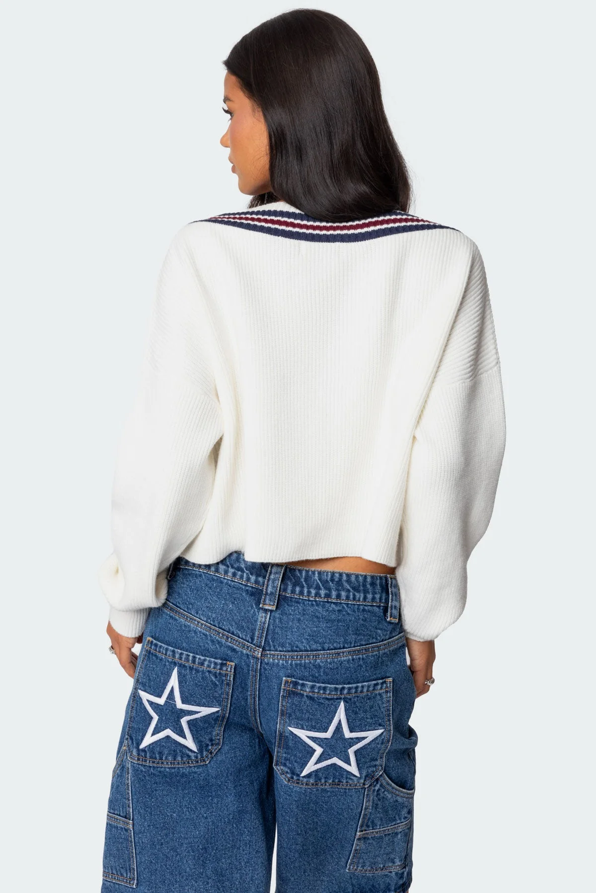Elevate your winter wardrobe with our stunning white V-neck knit sweater. Made from a blend of rayon, polyester, and nylon, this sweater features stylish striped detailing for a timeless look. Stay cozy and fashionable in all sizes from XS to XL. Make a bold statement with this long sleeve outerwear piece that is perfect for any occasion. Care Instructions: Hand wash at 30ºC, no bleach, no tumble dry, iron at 110ºC, avoid dry cleaning.